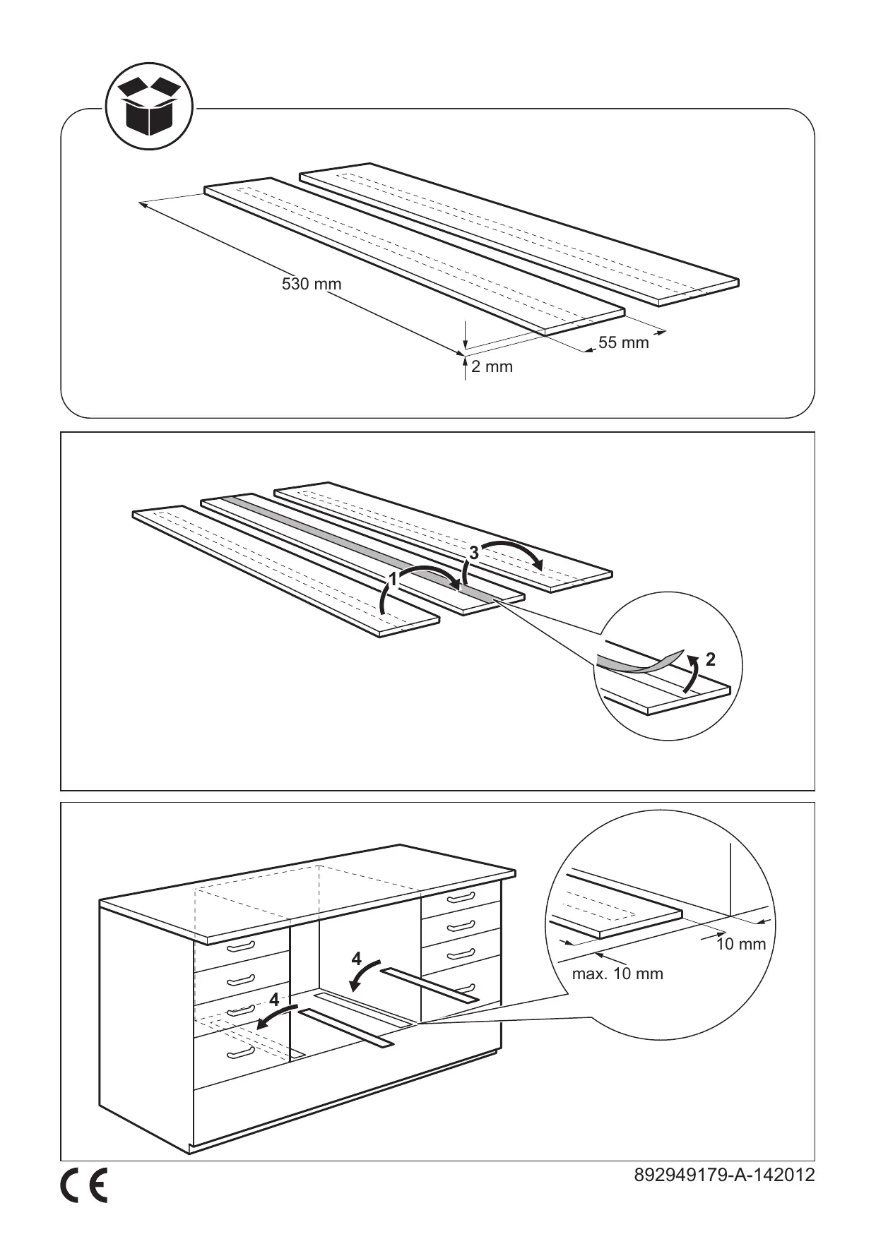 | Dimensions des pièces | 530 x 55 x 2 mm |