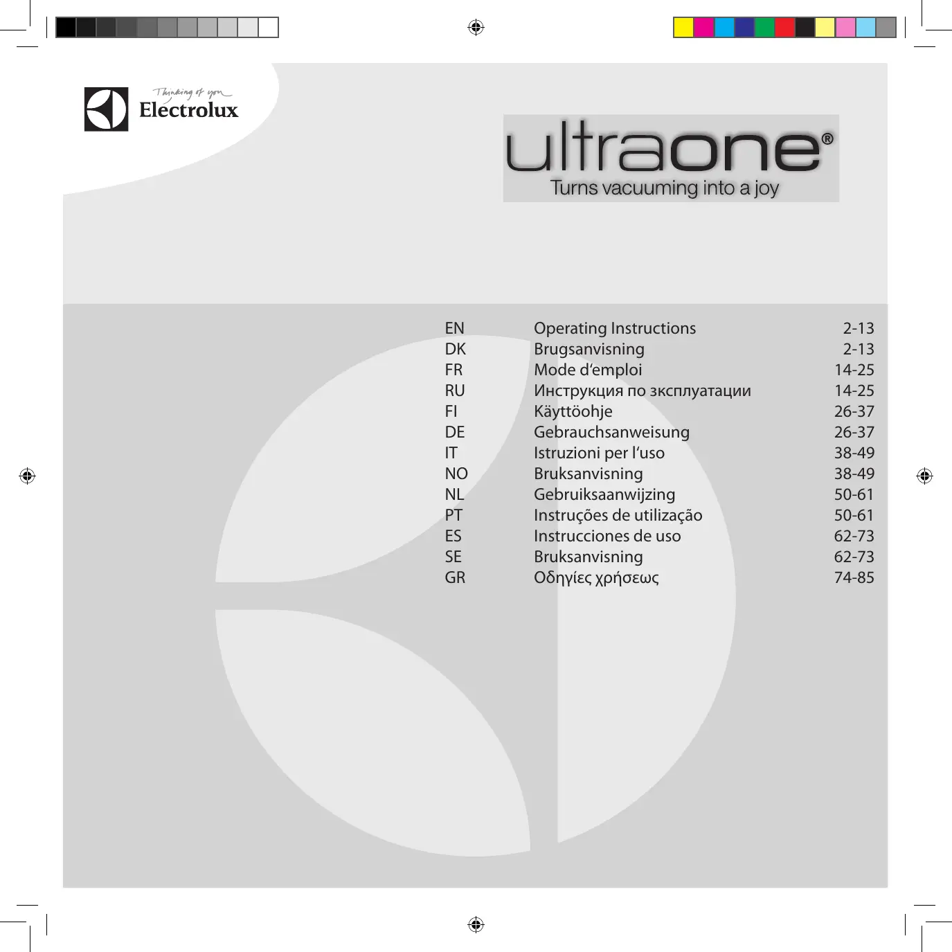- Le chapitre Consignes de sécurité doit être lu avec une attention particulière. Получайте удовольствие от вашего Electrolux UltraOne! Electrolux UltraOne pour un nettoyage plus efficace !