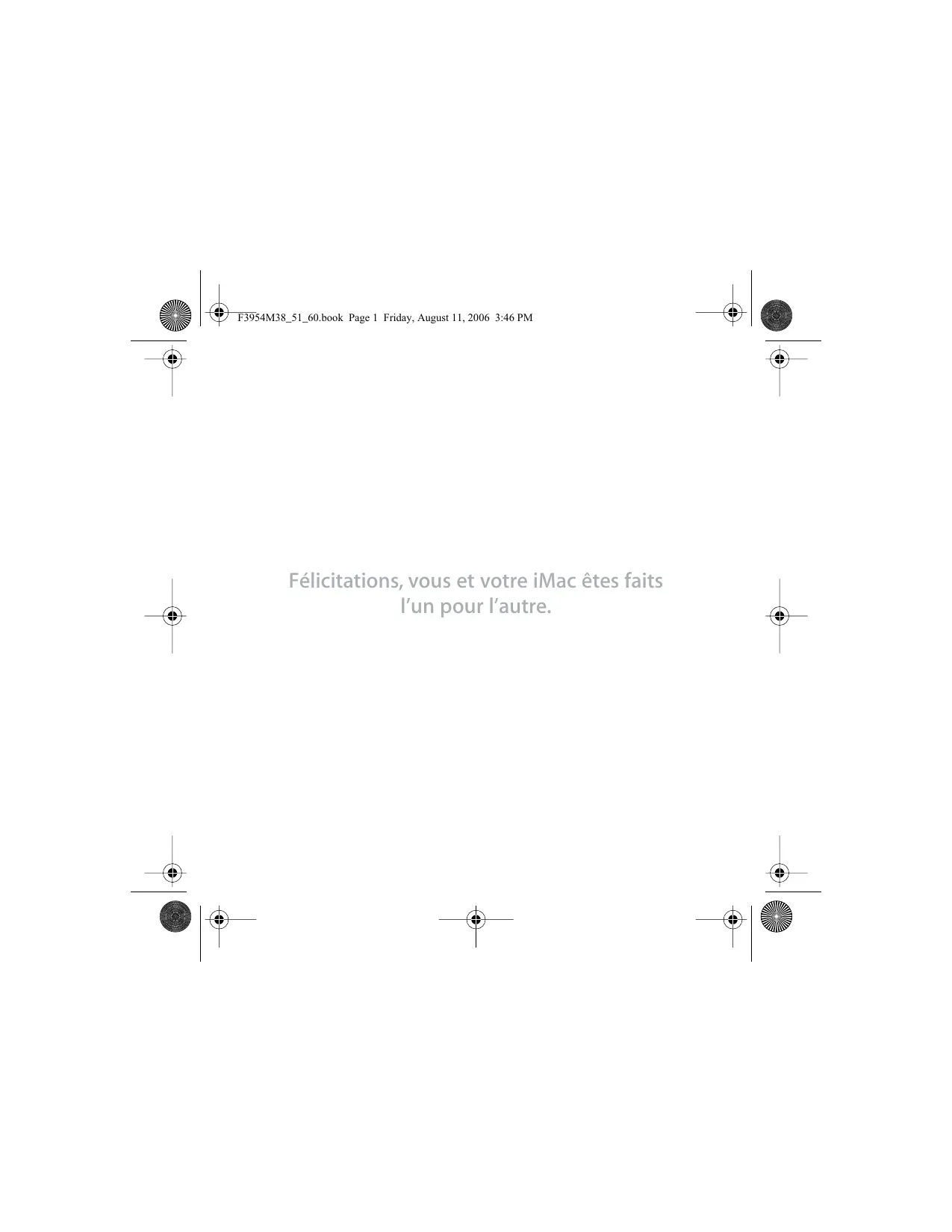 Sr book Page 10 Friday, August 11, 2006 3:46 PM & | & Configuration de votre iMac Les étapes ci-après vous permettront de configurer votre iMac. Étape 1 : Faites passer le câble d'alimentation à travers le trou présent sur le socle et branchez-le sur le port secteur situé au dos de votre iMac. 10 Chapitre 1 Prêt feu, configurez! Lis +