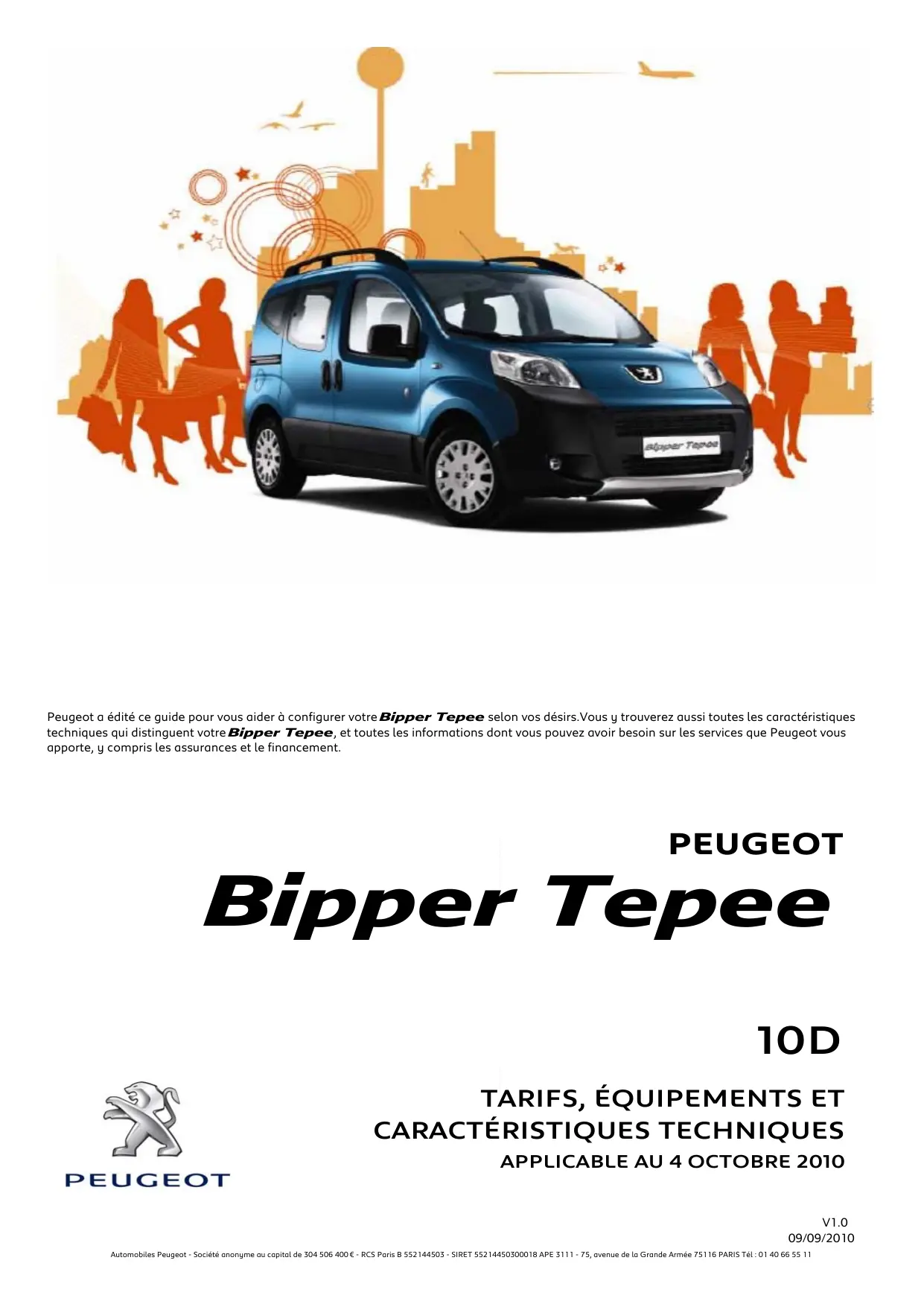 Peugeot a édité ce guide pour vous aider à configurer votre Bipper Tepee selon vos désirs. Vous y trouverez aussi toutes Les caractéristiques techniques qui distinguent votre Bipper Tepee, et toutes Les informations dont vous pouvez avoir besoin sur les services que Peugeot vous apporte, y compris Les assurances et Le financement.