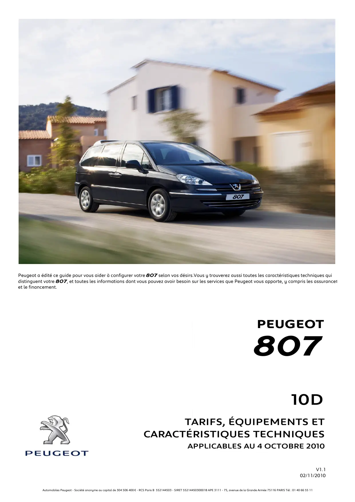 Autamobiles Peugect - Société anonyme au capital de 304 506 400€ - RCS Paris 8 55214503 - SIRET 55214450300018 APE 111 - 75, avenue de La Grande Armée 75116 PARIS Tél: 01 40 66 55 11
