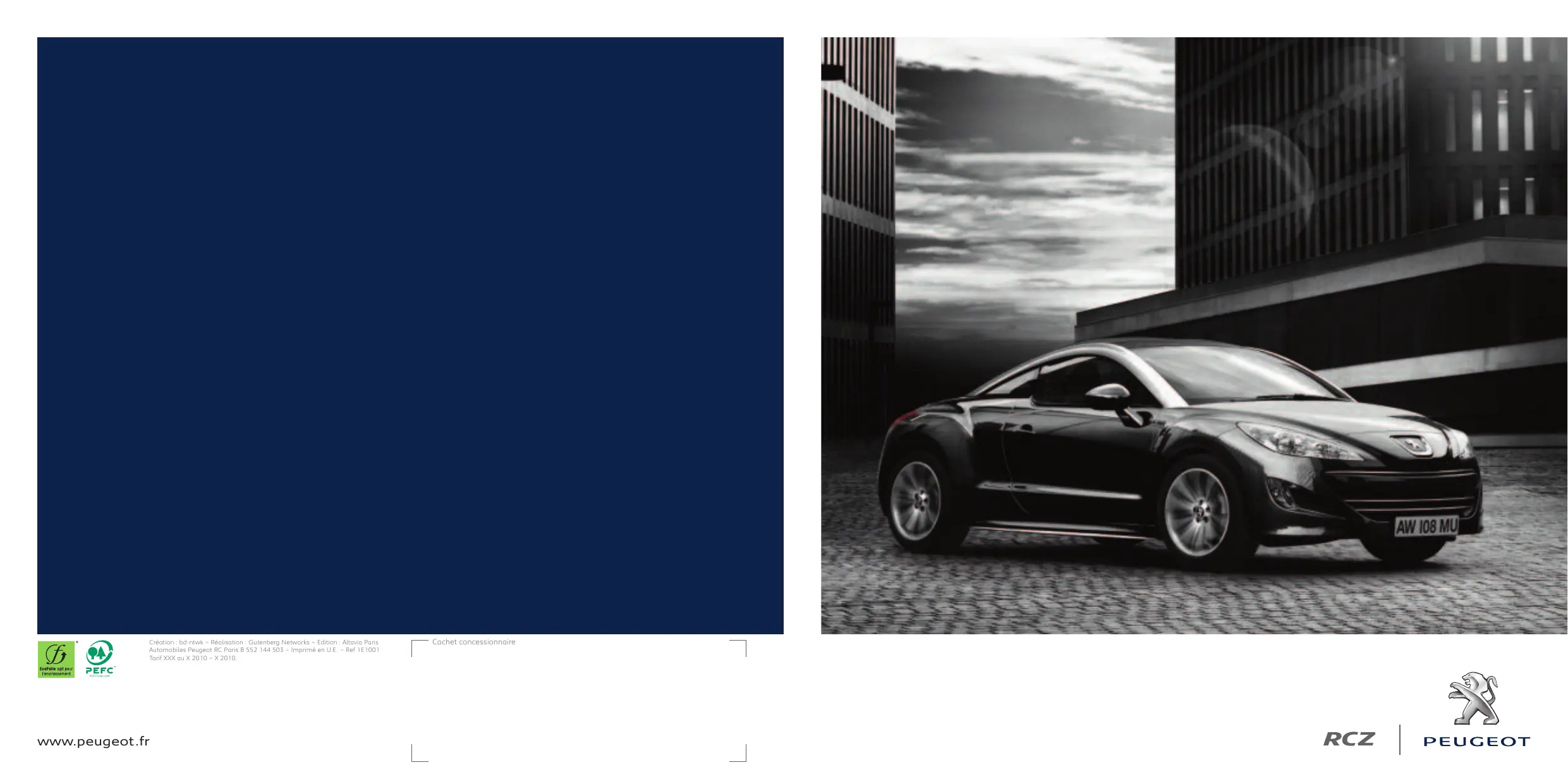 www.peugeot.fr RÉSEAU ET SERVICES Choisir Peugeot, c'est aussi disposer d'un vaste réseau de points de service au sein duquel l'accueil, Le professionnalisme, la performance des équipements et La qualité des services vous garantissent une satisfaction optimale. Ainsi, vous êtes sûr de vous adresser à un spécialiste qui vous écoute, comprend vos exigences et y répond avec efficacité. Quelle meilleure marque de confiance pour vous engager dans une relation basée sur le long terme ? Pour en savoir plus sur La Peugeot RCZ, la configurer et obtenir toutes les informations sur La personnalisation, Les spécifications, Les options et l'entretien de la RCZ, rendez-vous sur Le site POUR VOTRE TRANQUILLITÉ! LA GARANTIE CONSTRUCTEUR EUGEOT CONTRATS PRIVILÈGES Peugeot : véhicule de remplacement er nos pièces d'origine Peugeot a été testée qualité chez Peugeot, c'est aussi un révision et Maintenance, deux cas d'immobilisation, prise en charge et vérifiée avec sévérité pour votre état d'esprit : des avantages à l'intérieu formules uniques et personnalisées pour directe de votre sinistre en point de vente, sécurité. Elles sont garanties un an e véhicule dans le réseau partic du réseau, une garantie pièce: rouler l De l'assistance rapatriement g; ‘œuvre pendant deux ans en main.