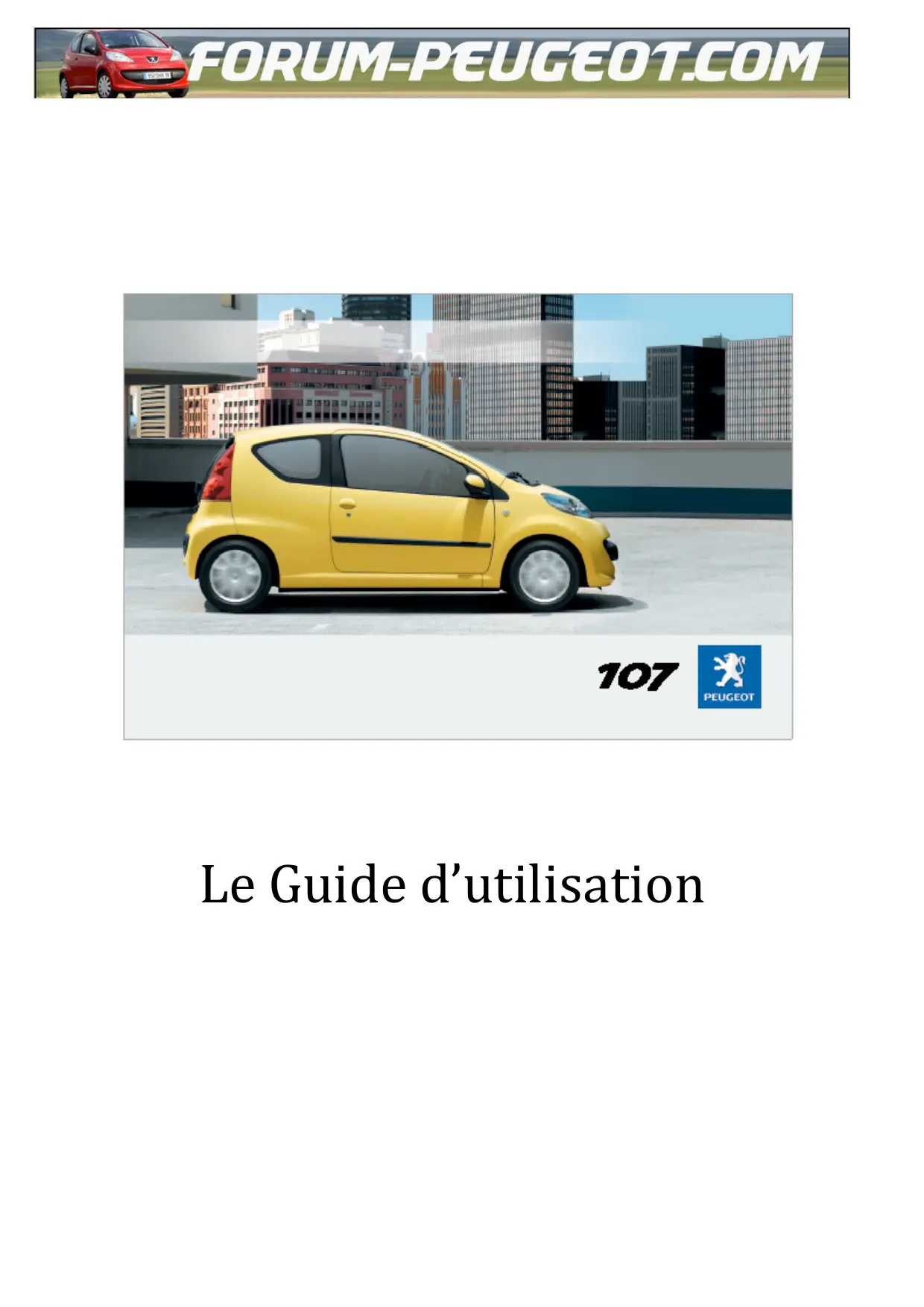 Téléchargez la notice de votre Voiture au format PDF gratuitement ! Retrouvez votre notice 107 2007 - PEUGEOT et reprennez votre appareil électronique en main. Sur cette page sont publiés tous les documents nécessaires à l'utilisation de votre appareil 107 2007 de la marque PEUGEOT.