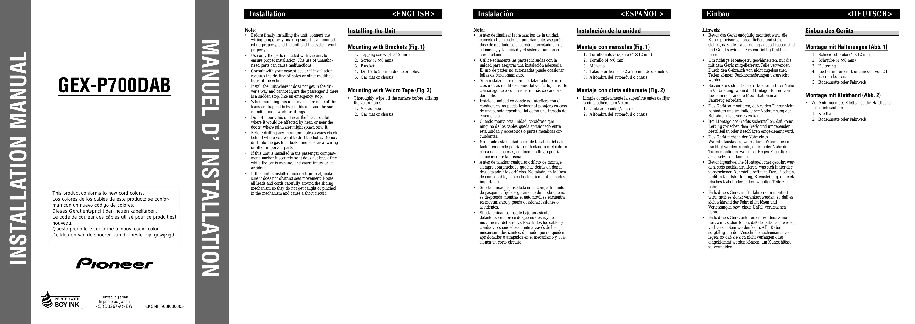 Retrouvez gratuitement la notice de l'appareil GEX-P700DAB PIONEER au format PDF.