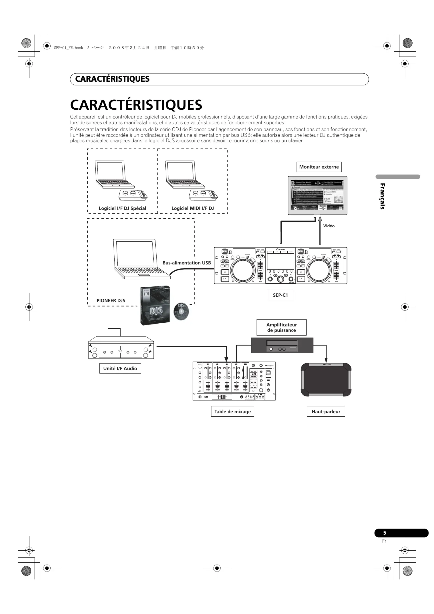 CARACTÉRISTIQUES Cet appareil est un contrôleur de logiciel pour DJ mobiles professionnels, disposant d'une large gamme de fonctions pratiques, exigées lors de soirées et autres manifestations, et d'autres caractéristiques de fonctionnement superbes.