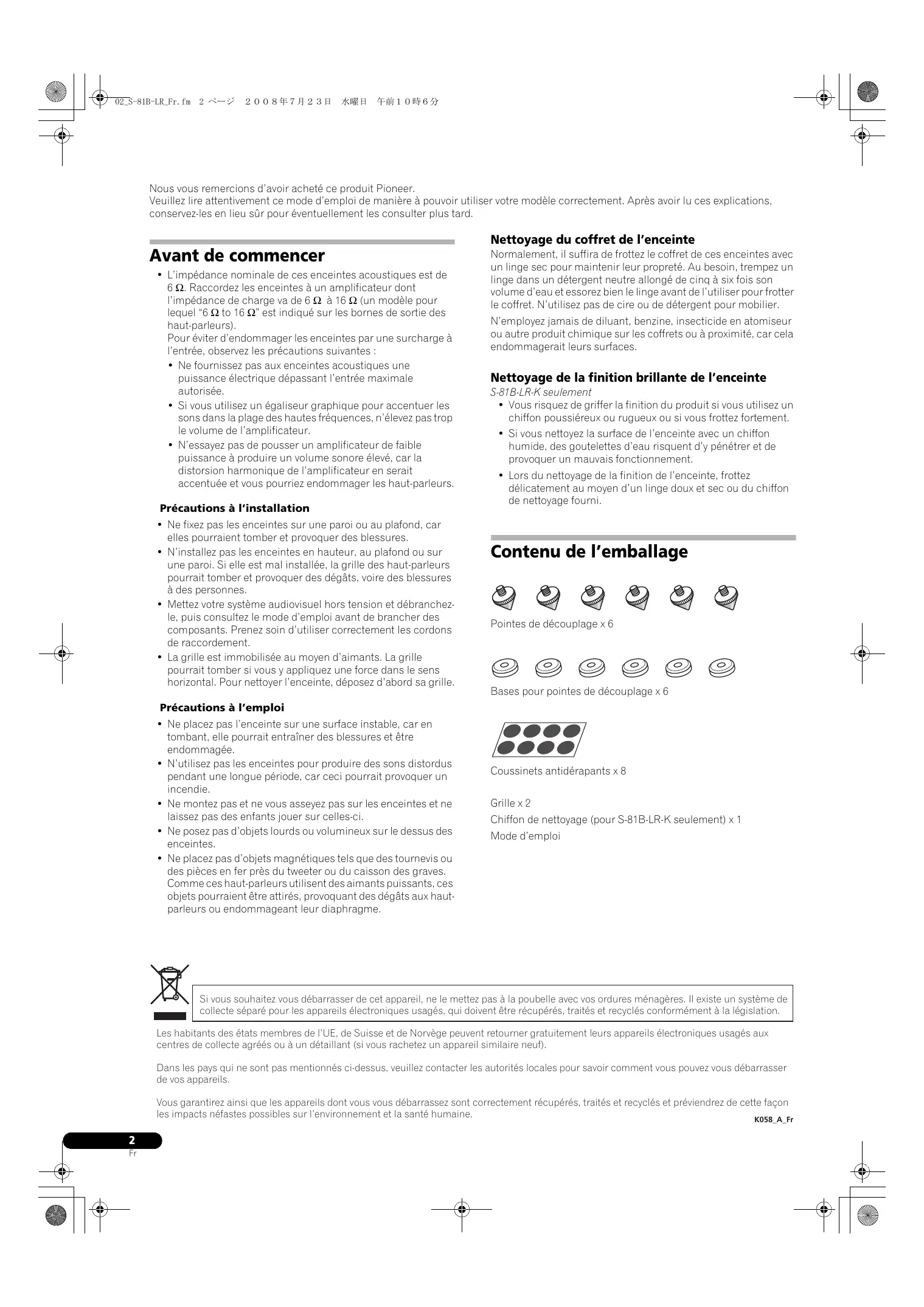 MODE D'EMPLOI S-81B-LR-K PIONEER