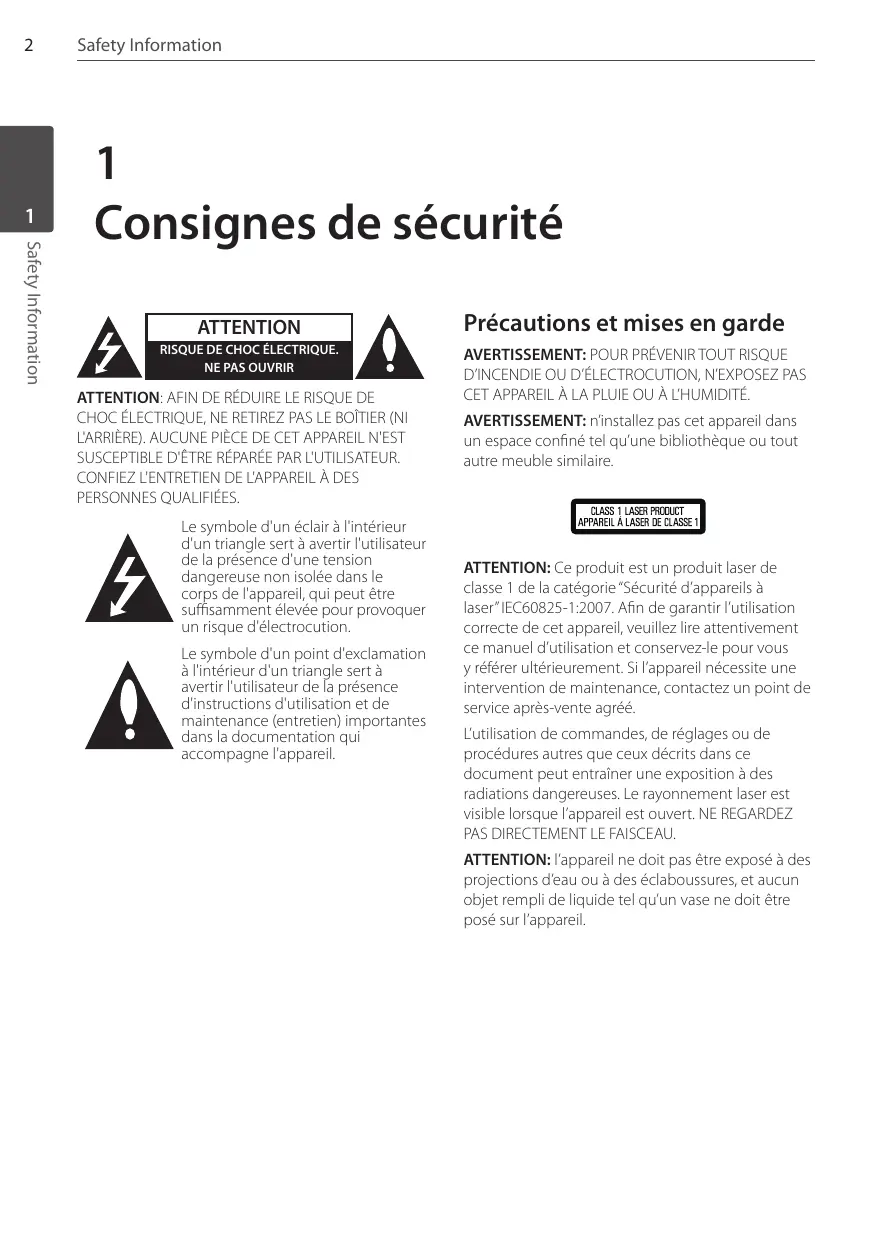Consignes de sécurité ATTENTION RISQUE DE CHOC ÉLECTRIQUE.