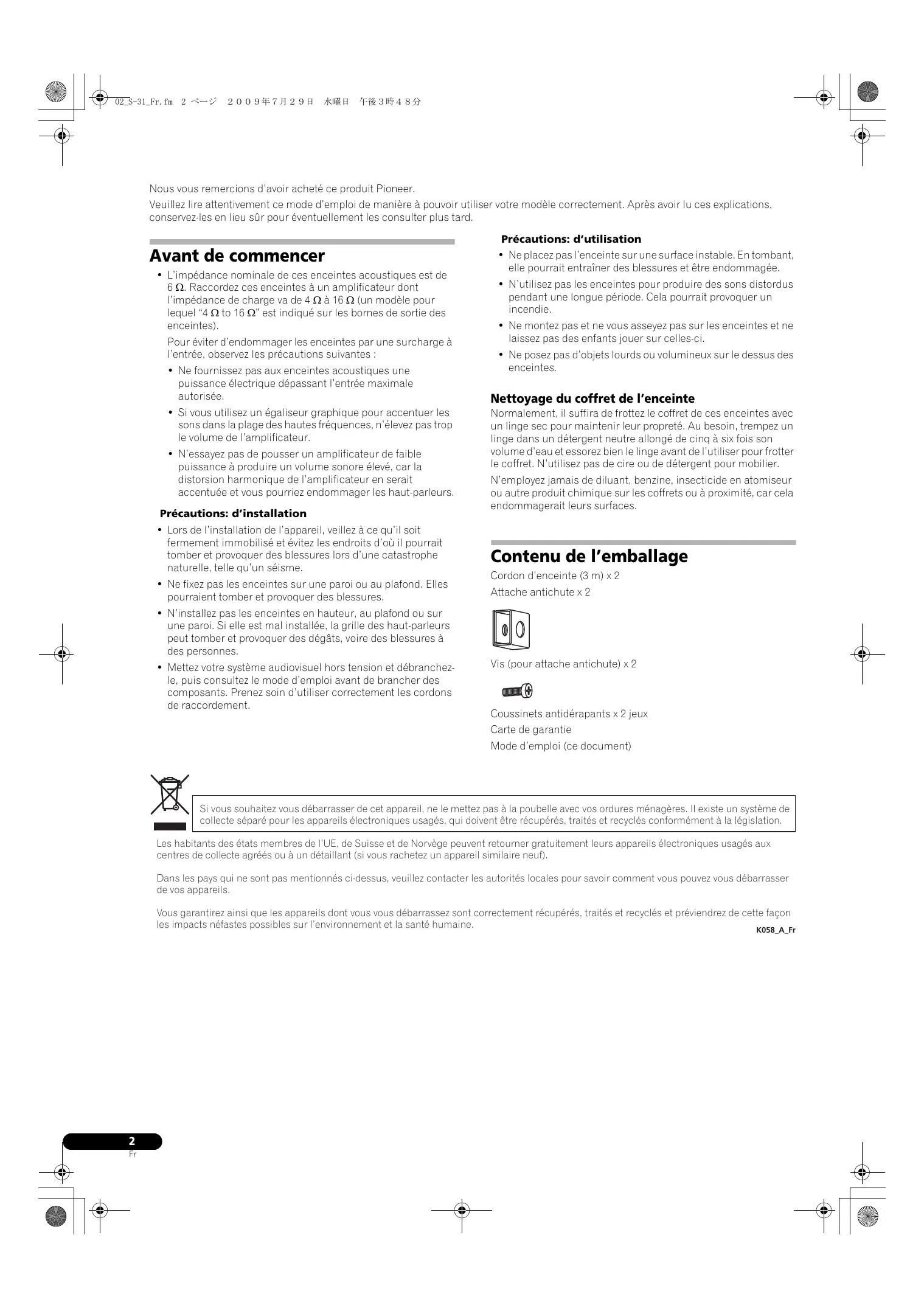 Publication de Pioneer Corporation. © 2009 Pioneer Corporation. Tous droits de reproduction et de traduction réservés.