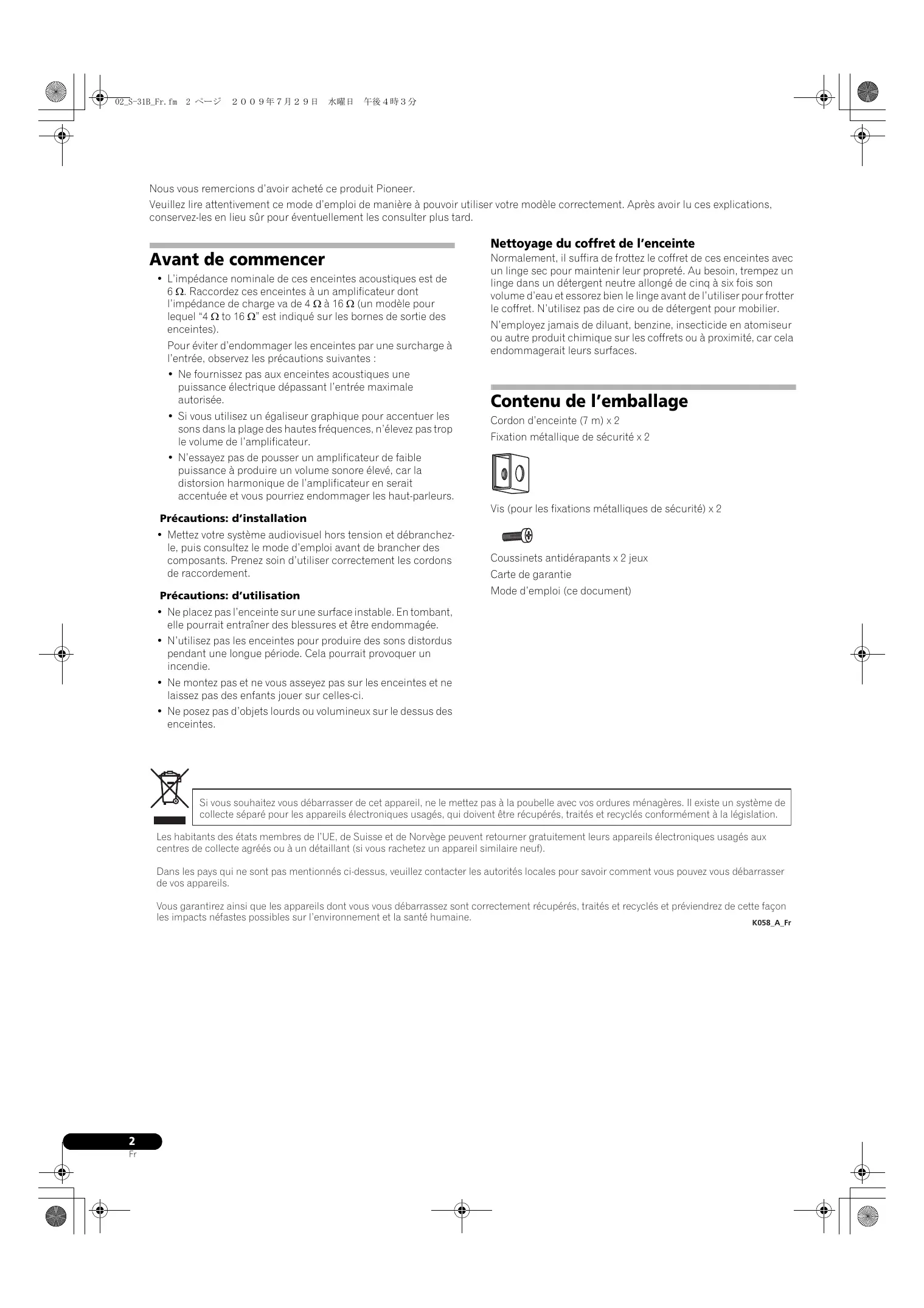MODE D'EMPLOI S-31B-LR-QL PIONEER