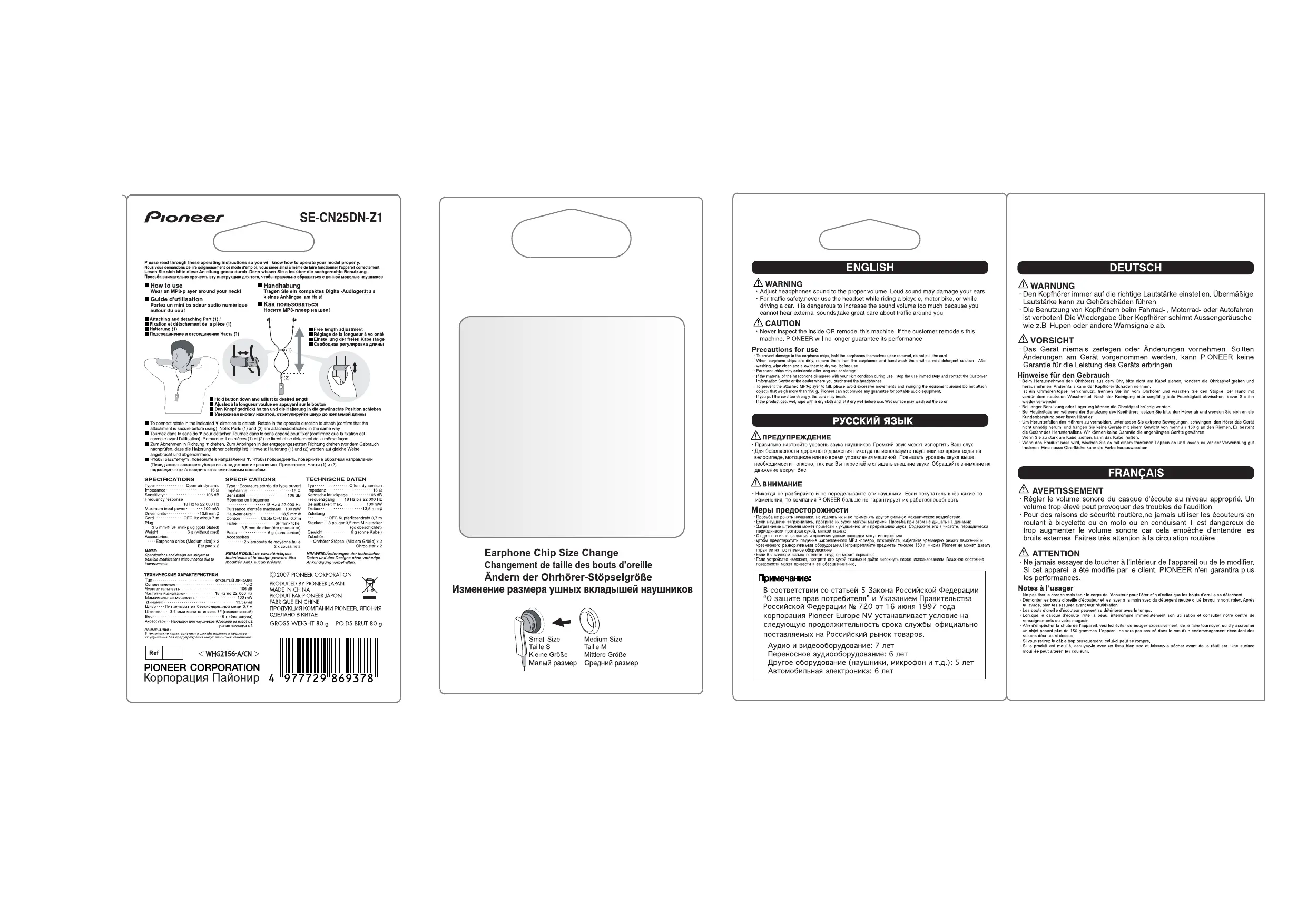 Téléchargez la notice de votre au format PDF gratuitement ! Retrouvez votre notice SE-CN25DN-Z1 - PIONEER et reprennez votre appareil électronique en main. Sur cette page sont publiés tous les documents nécessaires à l'utilisation de votre appareil SE-CN25DN-Z1 de la marque PIONEER.