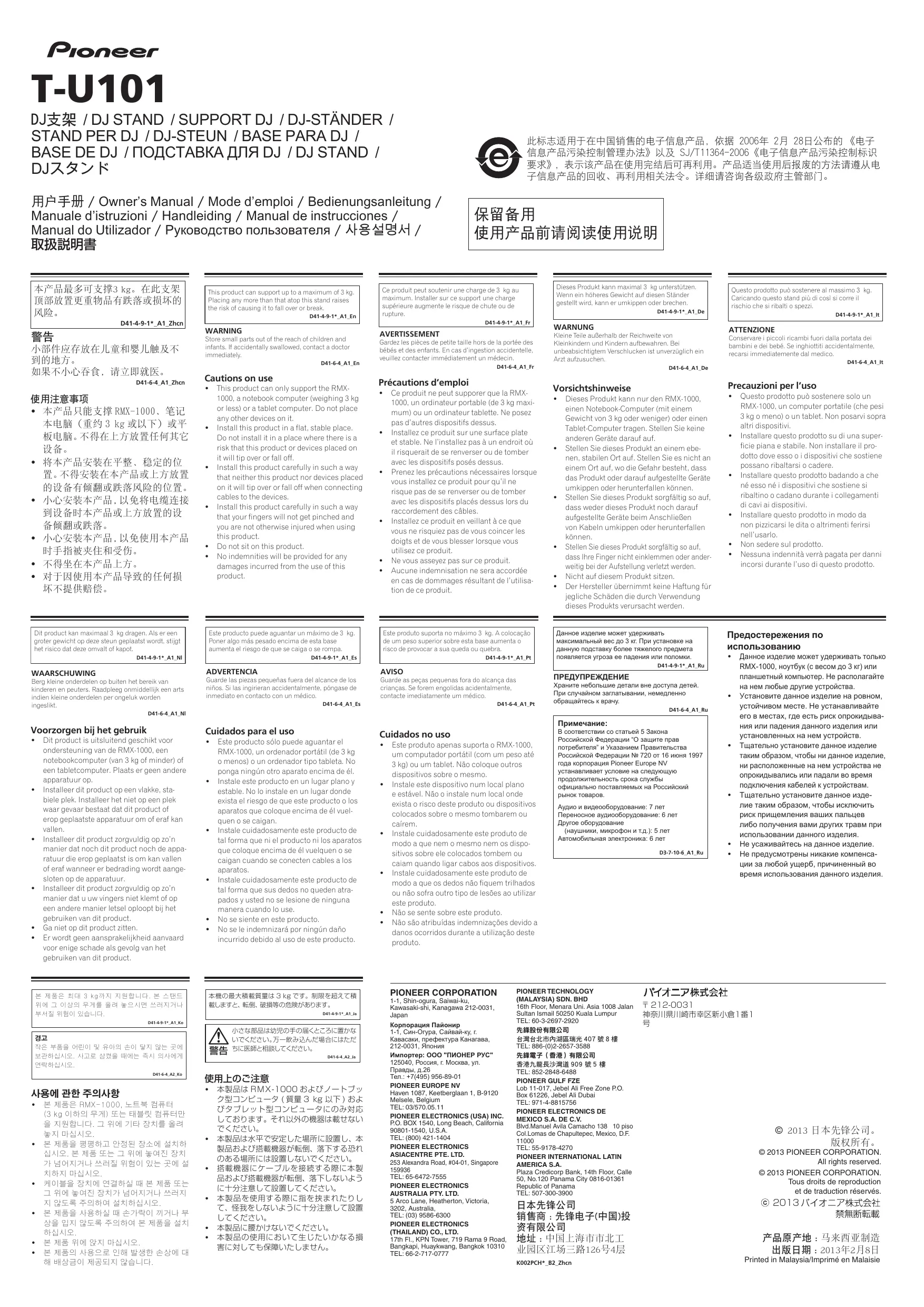 T-U101 - PIONEER - Notice d'utilisation et mode d'emploi gratuit
