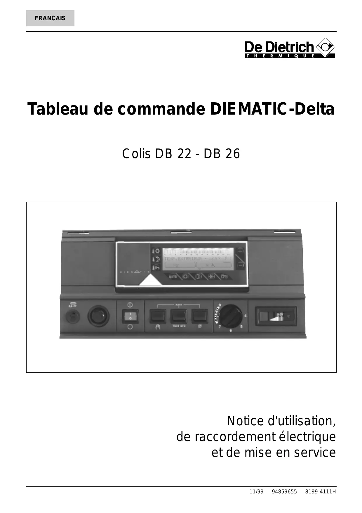 FRANÇAIS Tableau de commande DIEMATIC-Delta Colis DB 22 - DB 26 Notice d'utilisation, de raccordement électrique et de mise en service 11/99 - 94859655 - 8199-4111H SOMMAIRE 1. GENERALITES ... 1