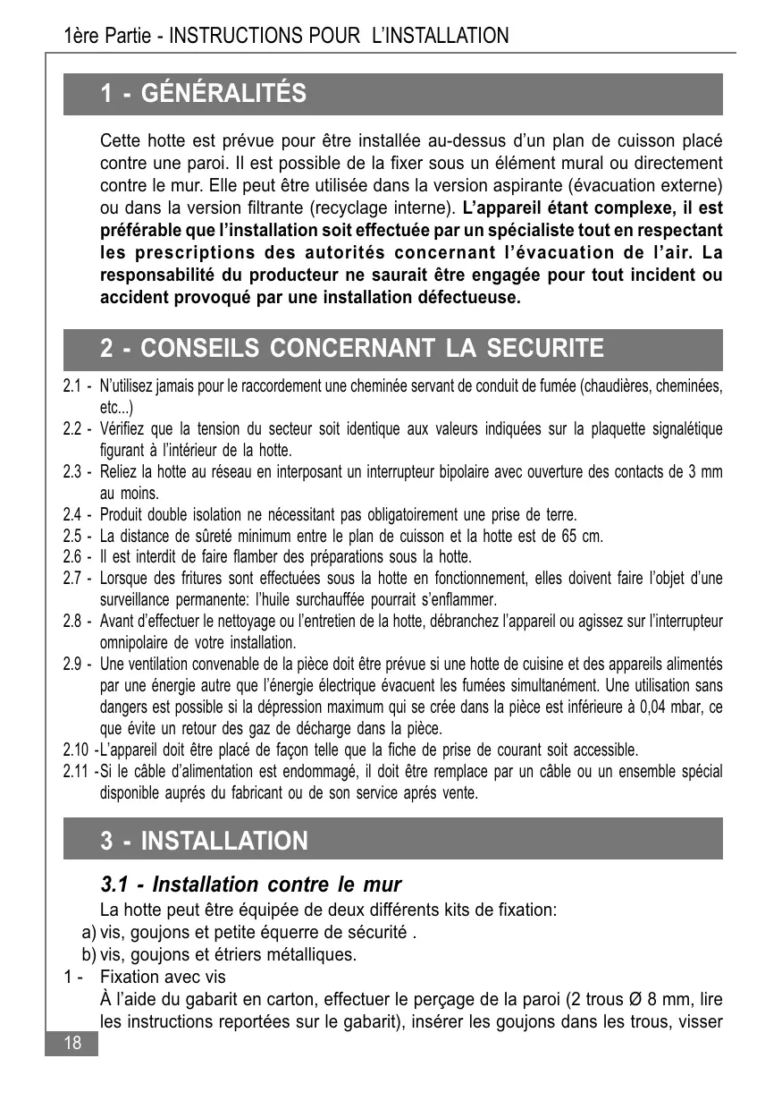 | Type d'évacuation | Évacuation extérieure ou recyclage |