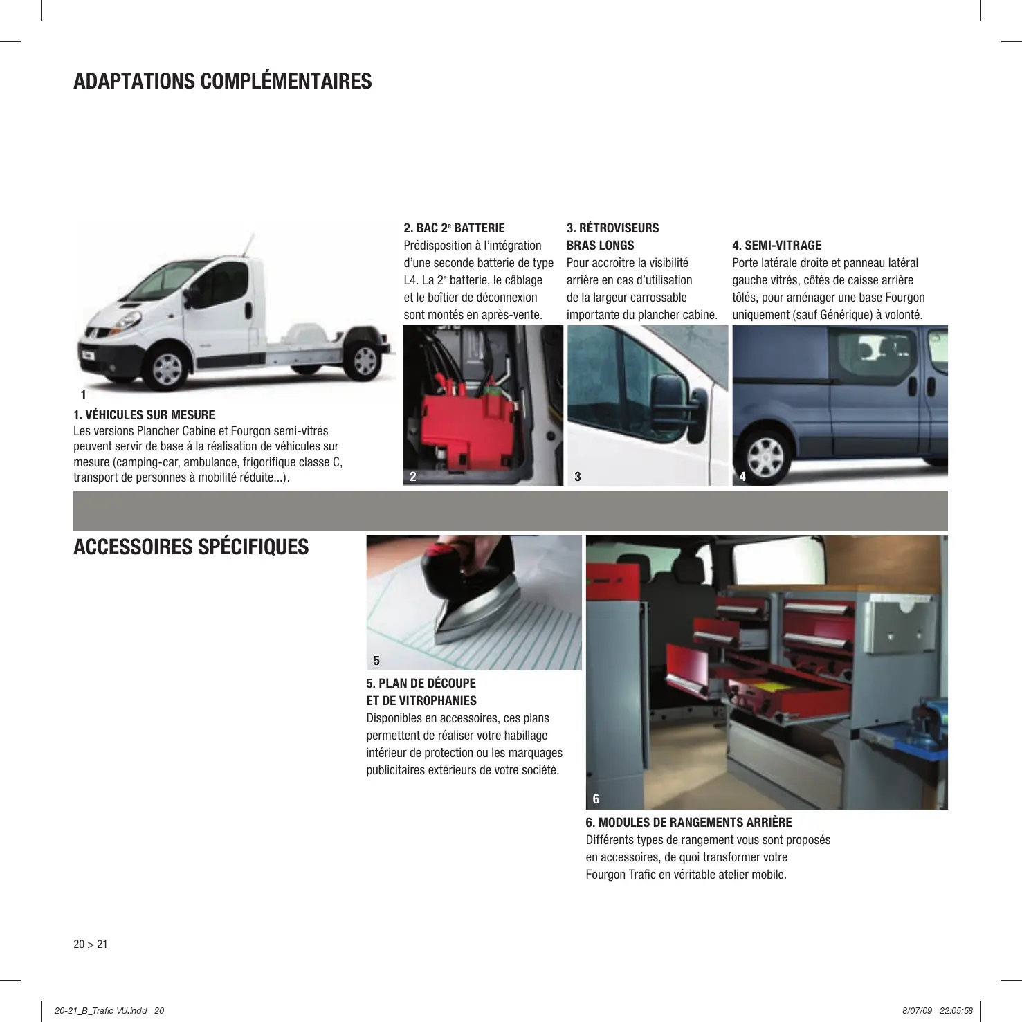 Différents types de rangement vous sont proposés en accessoires, de quoi transformer votre Fourgon Trafic en véritable atelier mobile. 20 > 21 20-21_B_Trafic VU.indd 20 8/07/09 22:05:58