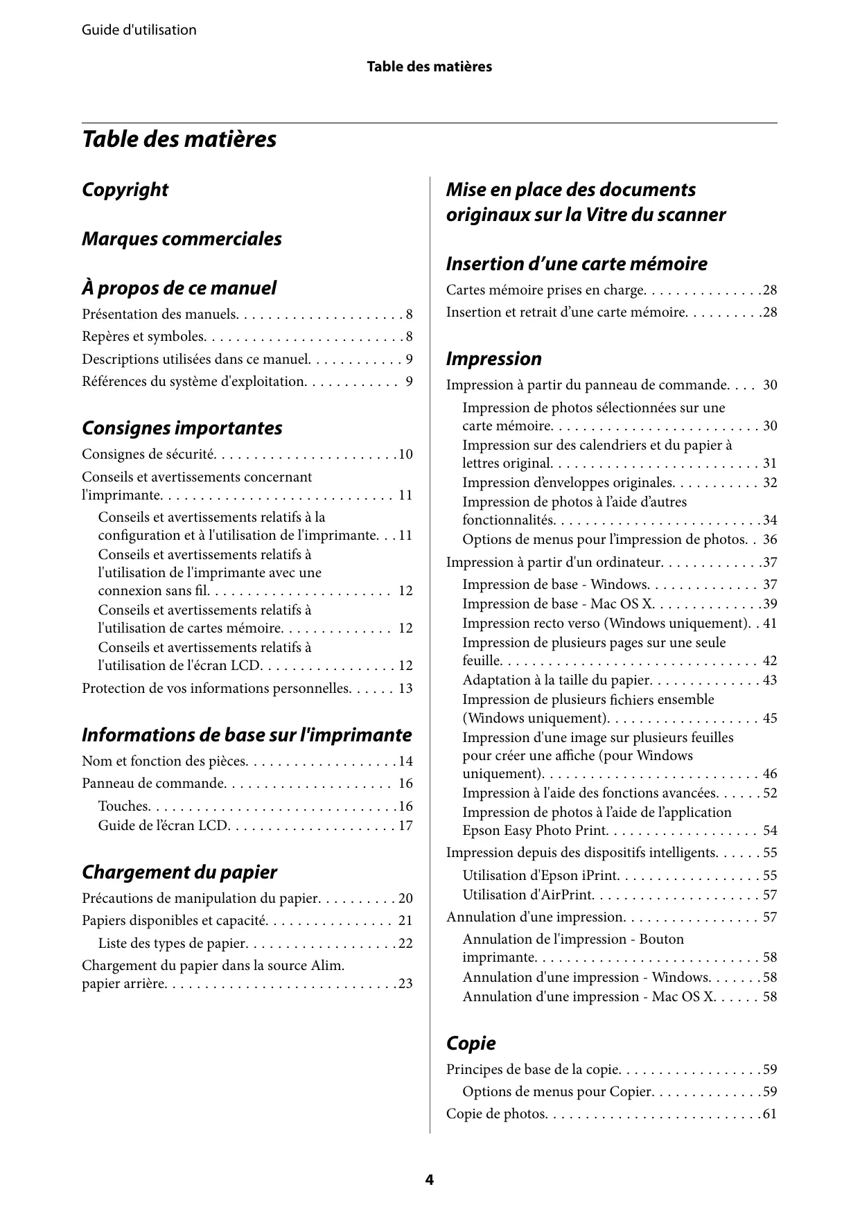 - Utilisation d'Epson iPrint p. 55