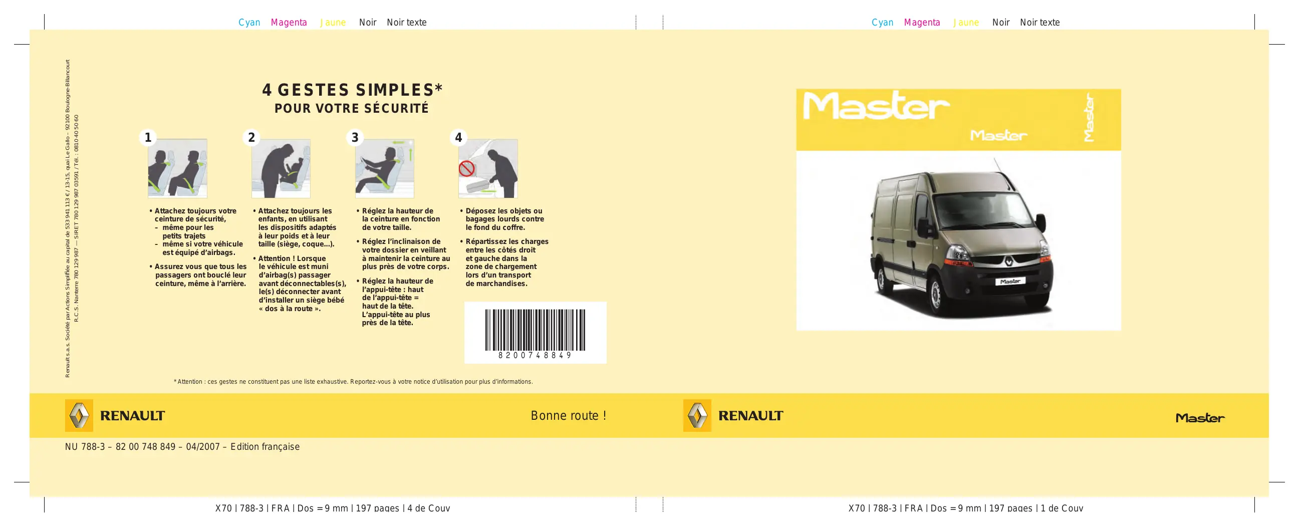 - Attention : ces gestes ne constituent pas une liste exhaustive. Reportez-vous à votre notice d’utilisation pour plus d’informations. Bonne route ! NU 788-3 – 82 00 748 849 – 04/2007 – Edition française X70 | 788-3 | FRA | Dos = 9 mm | 197 pages | 4 de Couv X70 | 788-3 | FRA | Dos = 9 mm | 197 pages | 1 de Couv