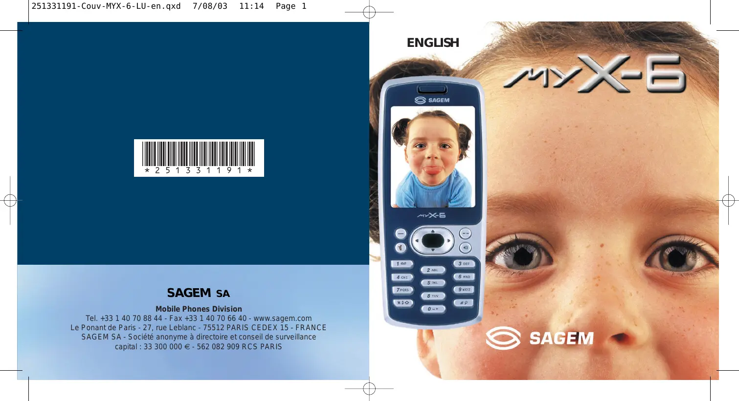 MYX-6 - Téléphone mobile SAGEM - Notice d'utilisation et mode d'emploi gratuit