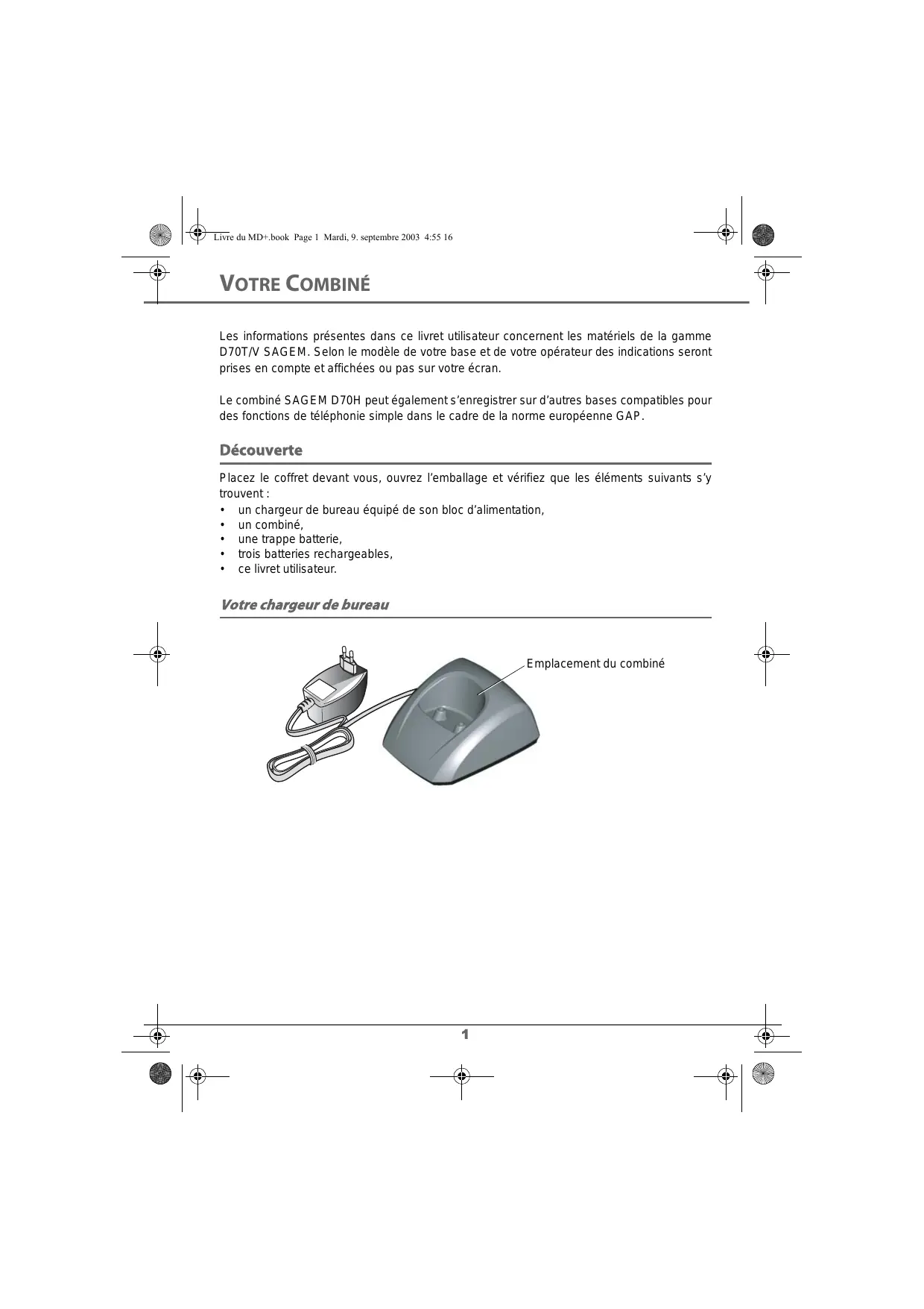 Vous venez d'acquérir un combiné SAGEM D70H et nous vous remercions de la confiance que vous nous accordez. Toutes les fonctions de votre combiné sont disponibles avec les bases SAGEM D70T/V et SAGEM DS0TW.