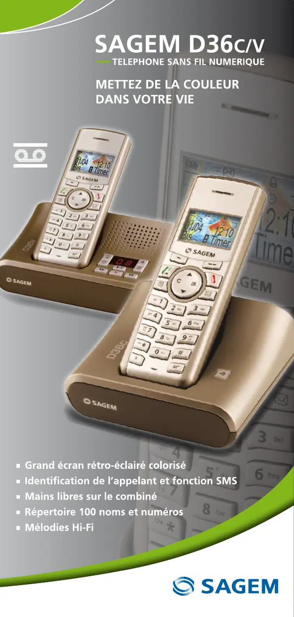 D36V - Téléphone sans fil SAGEM - Notice d'utilisation et mode d'emploi gratuit