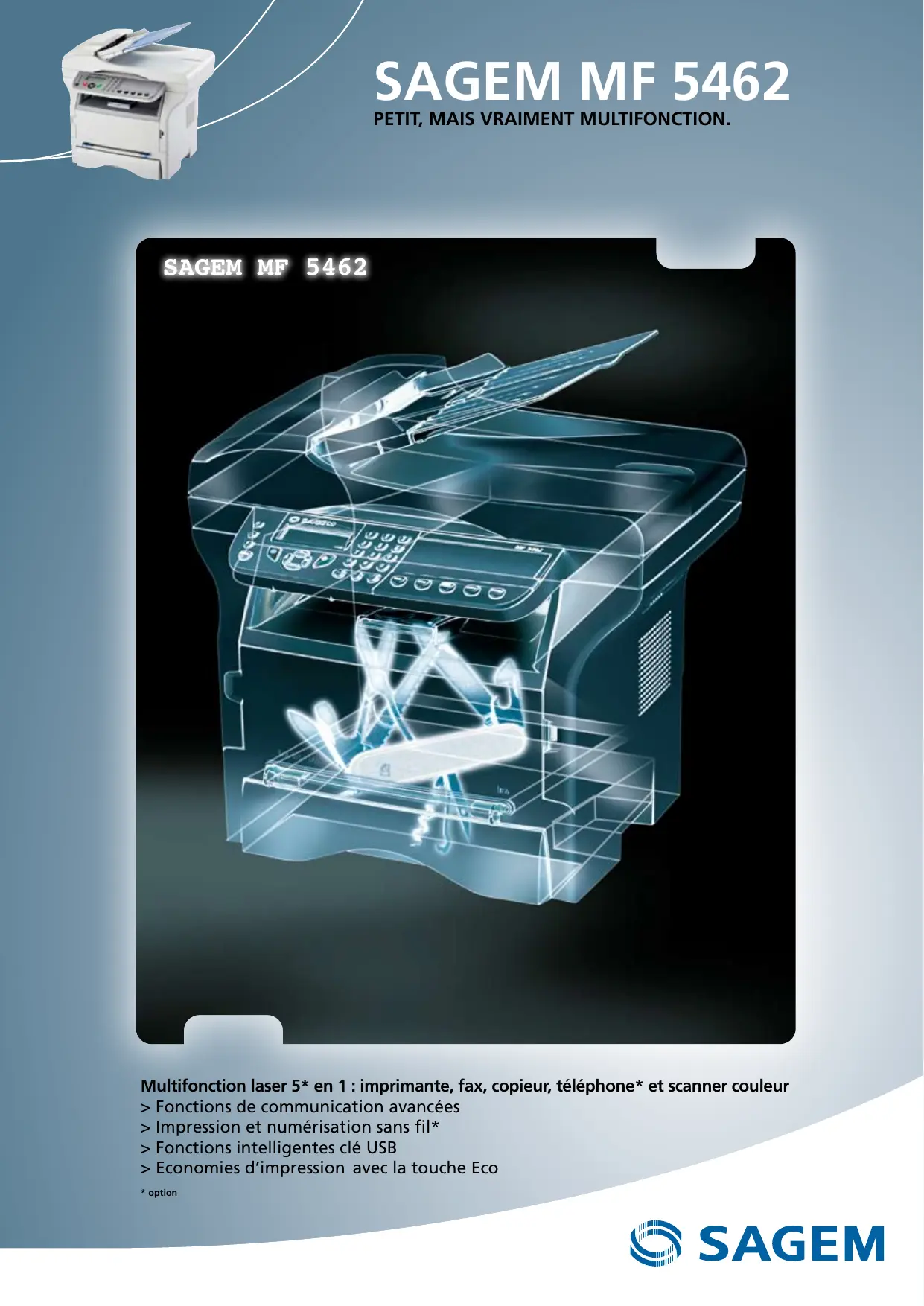 Retrouvez gratuitement la notice de l'appareil MF 5462 SAGEM au format PDF.