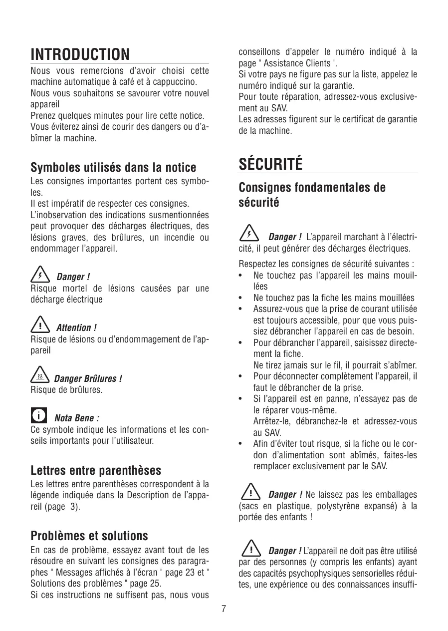 Symboles utilisés dans la notice...........7 Lettres entre parenthèses. 7 Problèmes et solutions 7