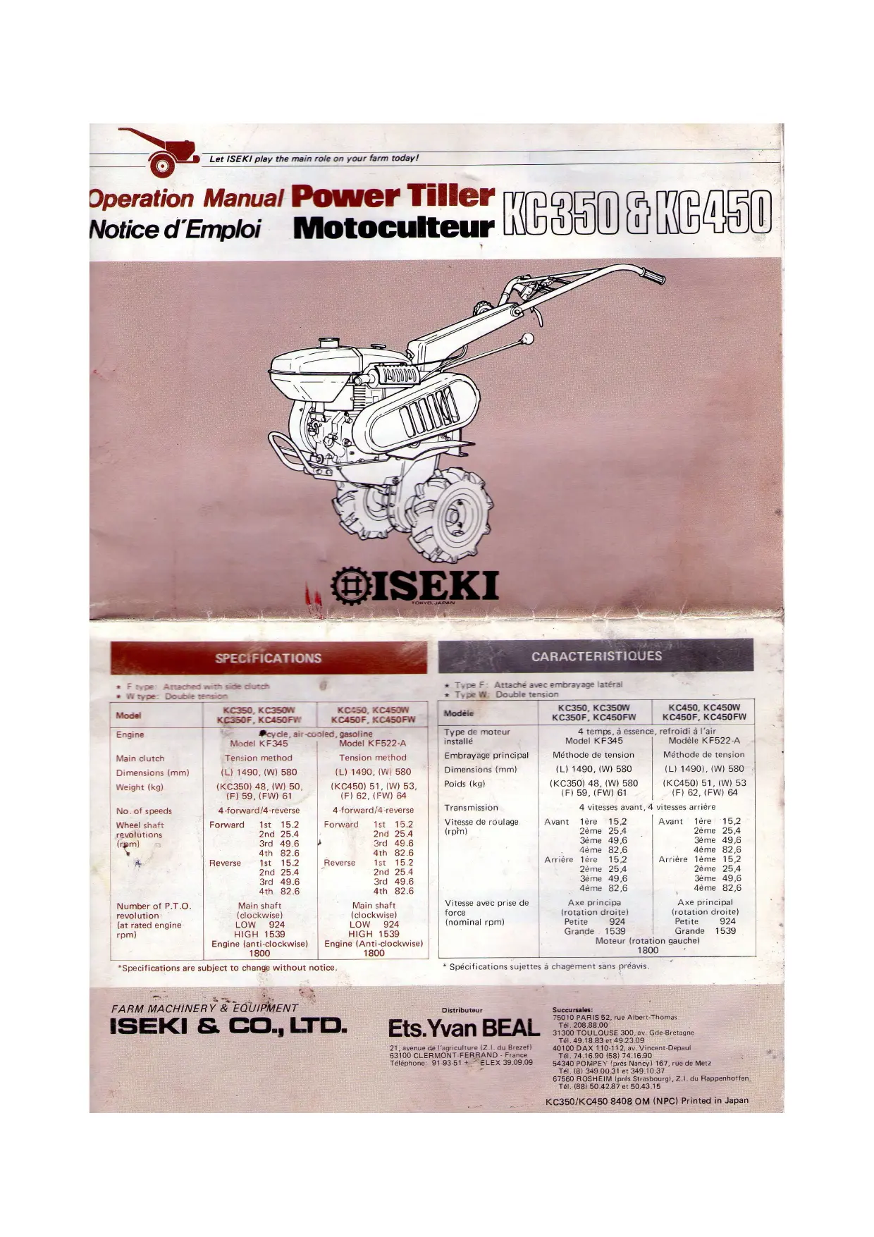 Retrouvez gratuitement la notice de l'appareil KC 350 ISEKI au format PDF.