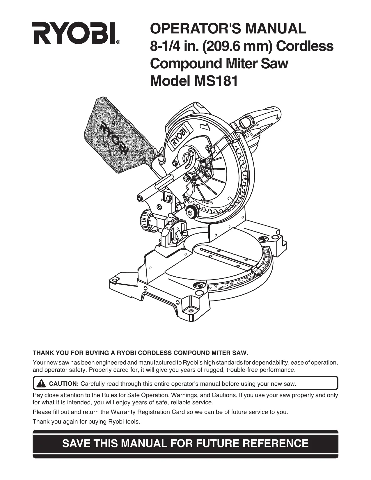 Retrouvez gratuitement la notice de l'appareil MS181 RYOBI au format PDF.