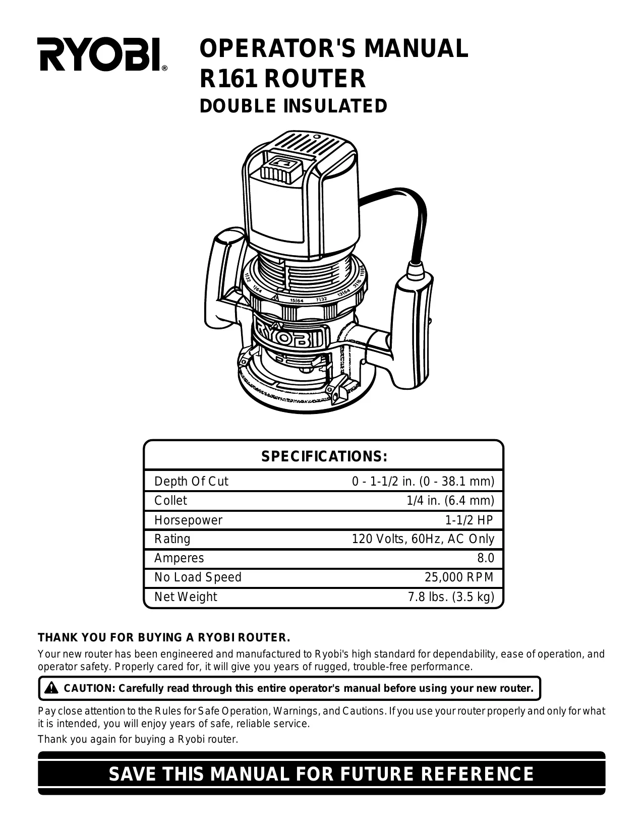 R161 - Défonceuse électrique RYOBI - Notice d'utilisation et mode d'emploi gratuit