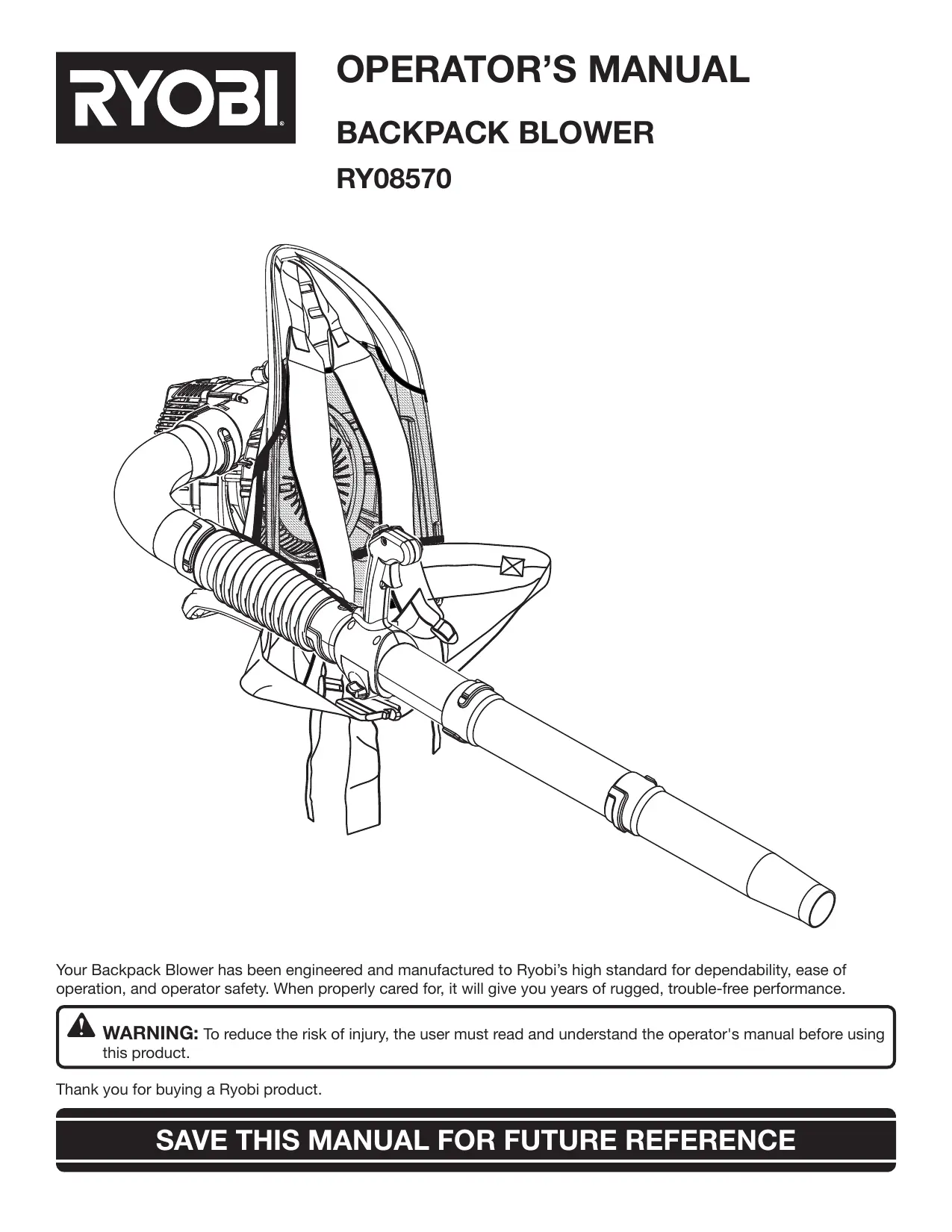 RY08570 - Souffleur de feuilles RYOBI - Notice d'utilisation et mode d'emploi gratuit
