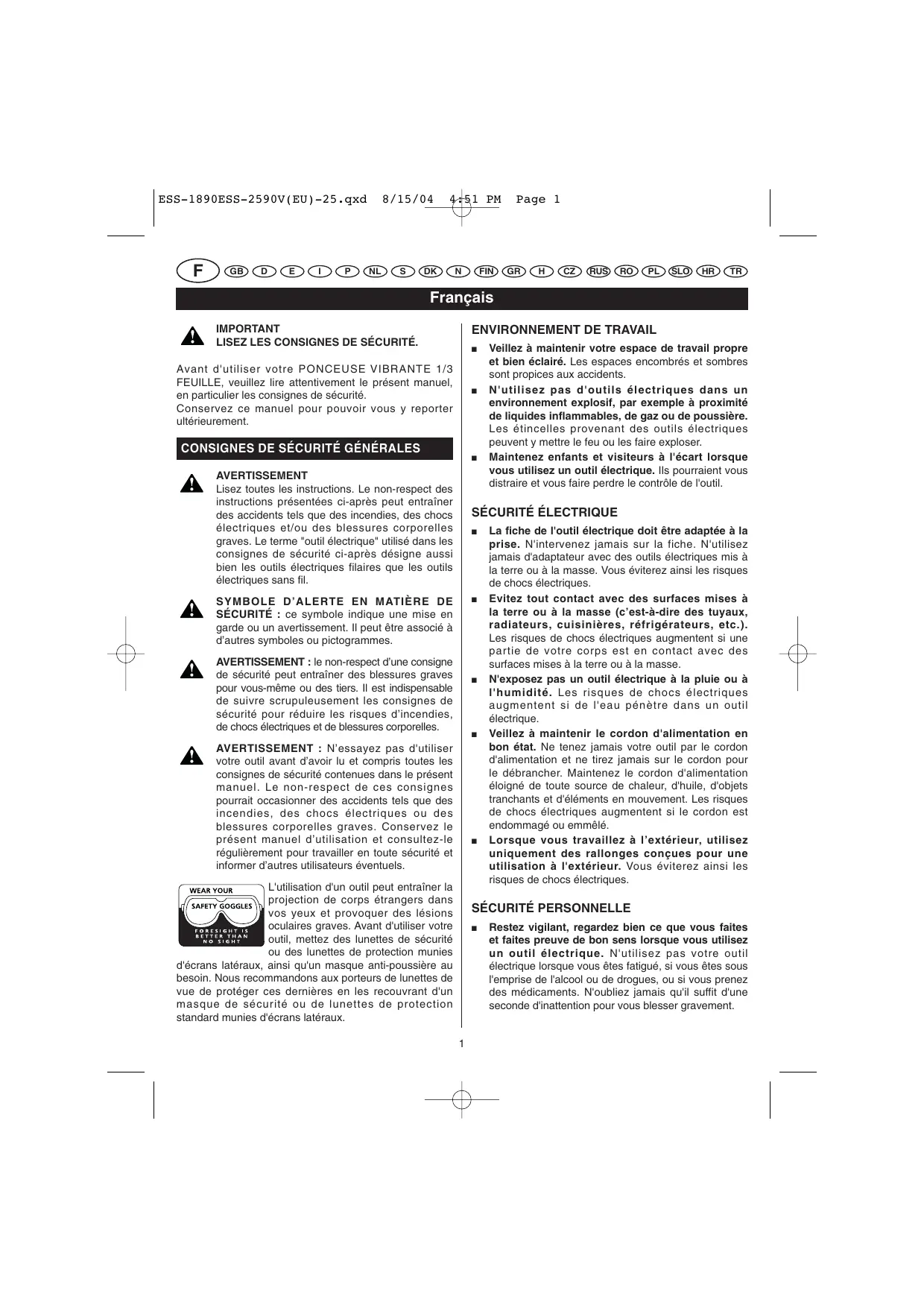 ESS1890C - Ponceuse vibrante RYOBI - Notice d'utilisation et mode d'emploi gratuit
