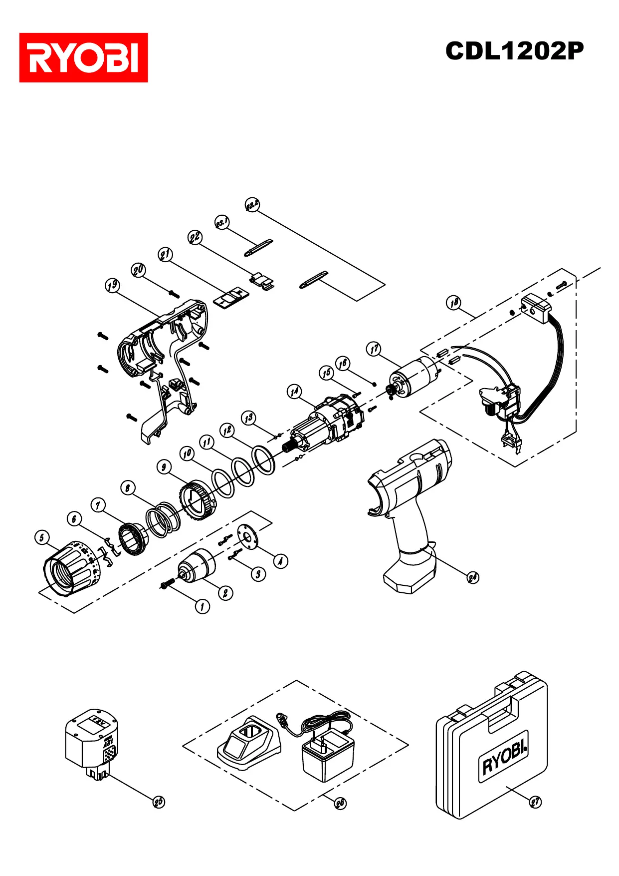 Retrouvez gratuitement la notice de l'appareil CDL1202P RYOBI au format PDF.