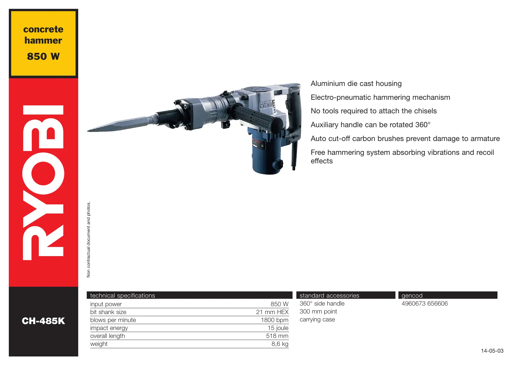 Retrouvez gratuitement la notice de l'appareil CH-485K RYOBI au format PDF.