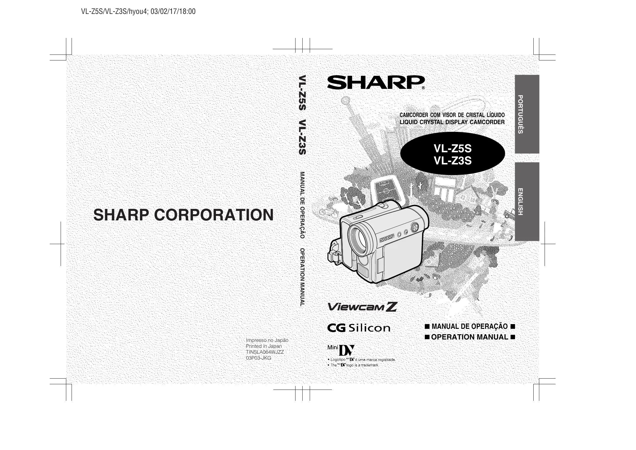 VL-Z3S - Caméscope SHARP - Notice d'utilisation et mode d'emploi gratuit