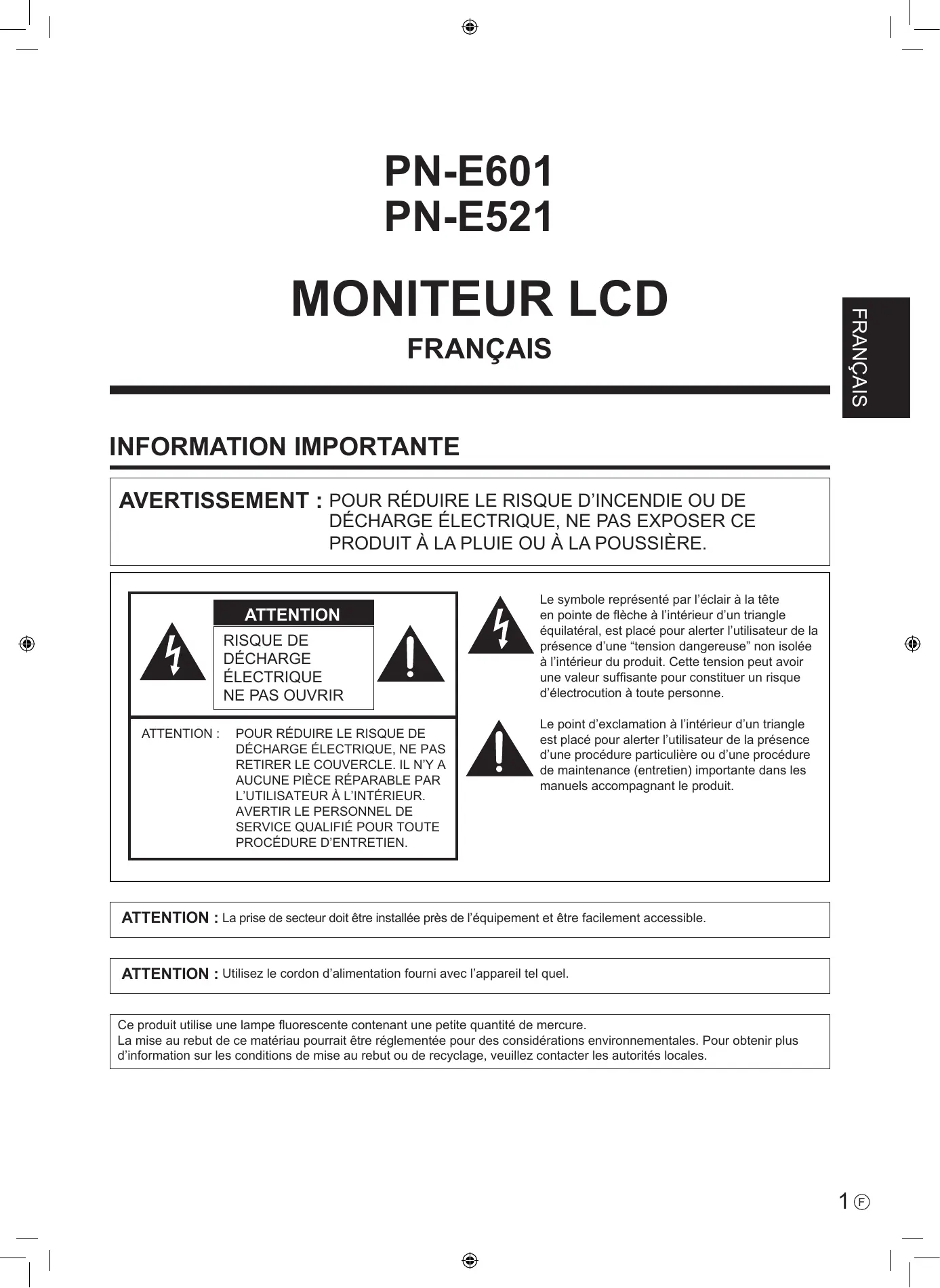 PN-E601 - Écran professionnel SHARP - Notice d'utilisation et mode d'emploi gratuit