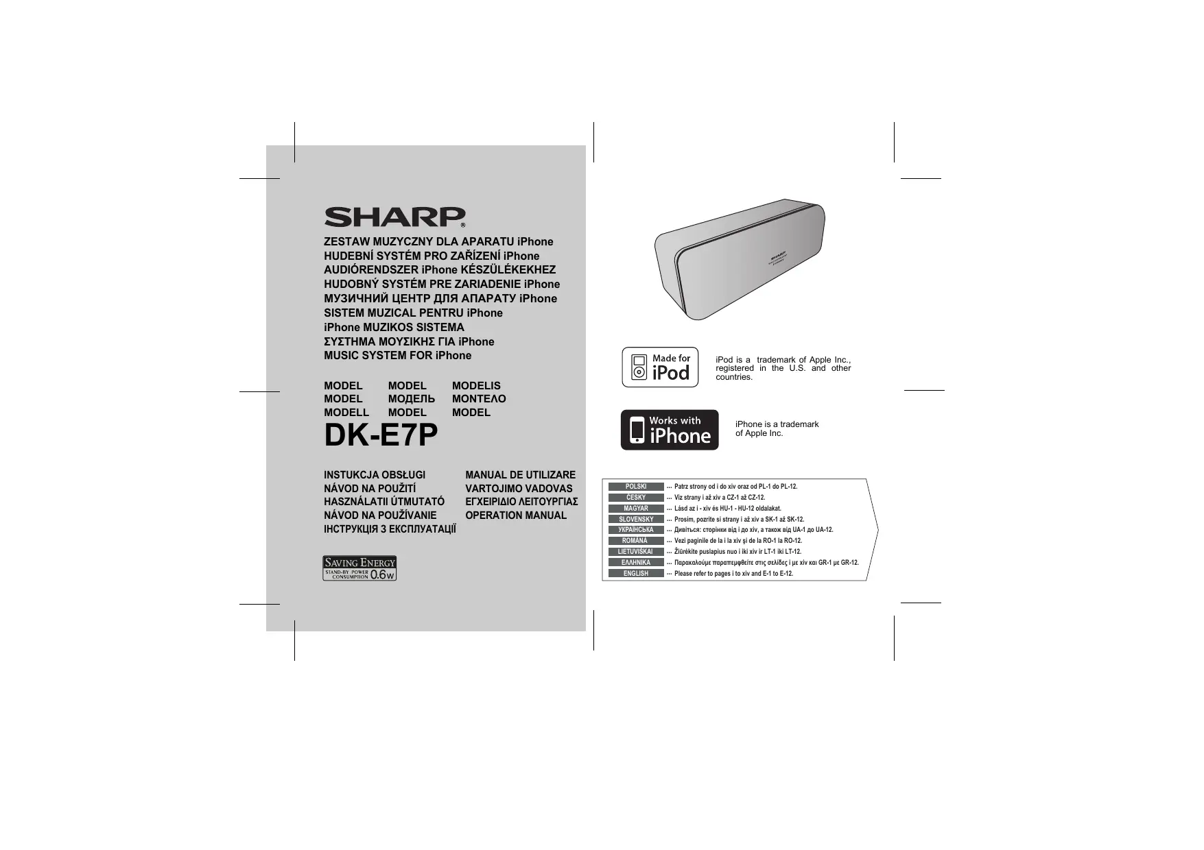 Retrouvez gratuitement la notice de l'appareil DK-E7P SHARP au format PDF.