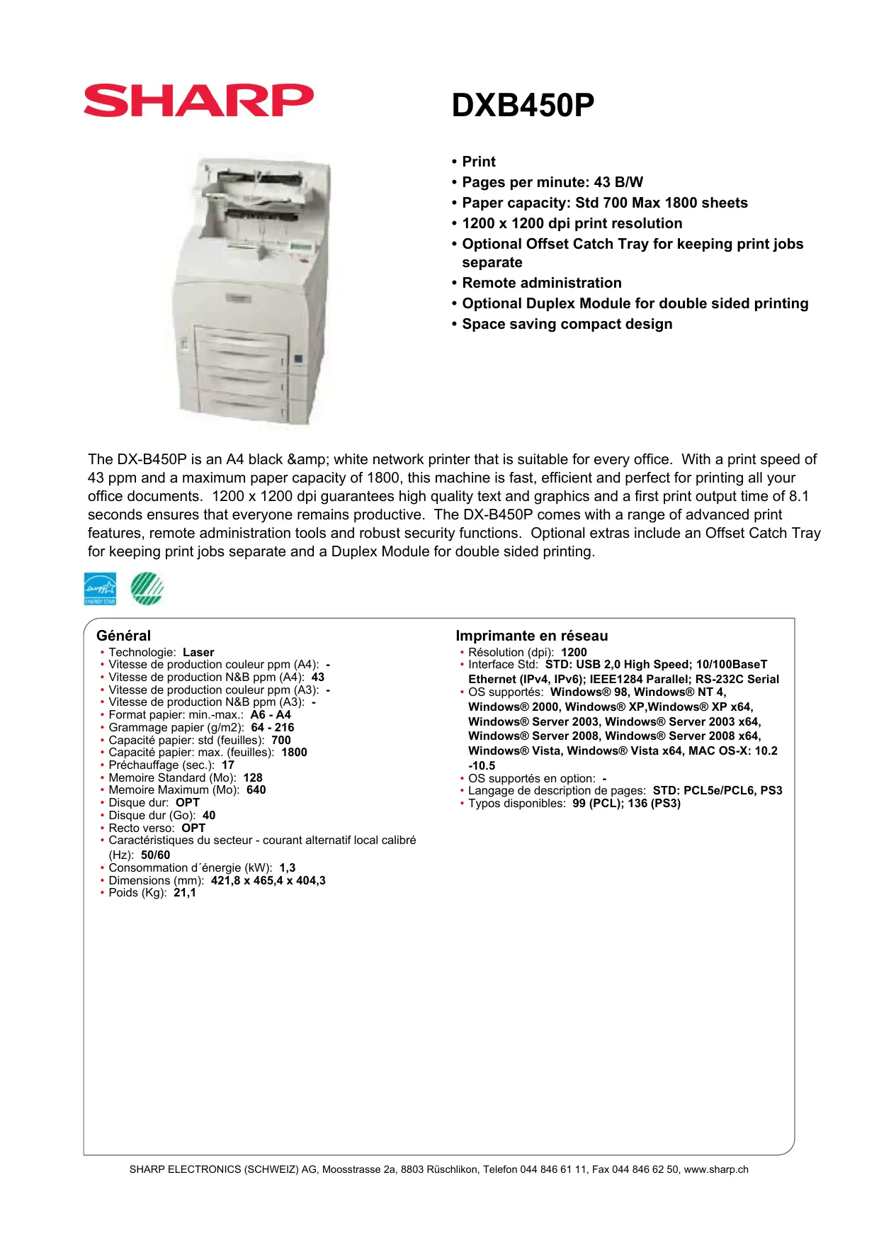 DX-B450P - Imprimante SHARP - Notice d'utilisation et mode d'emploi gratuit