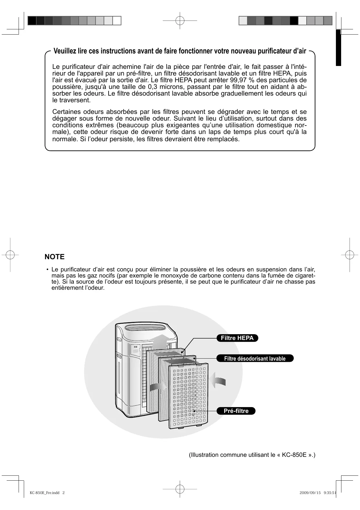 Merci de vous être porté acquéreur d'un purificateur d'air SHARP. Veuillez lire attenti- vement le présent manuel avant d'utiliser le purificateur d'air.