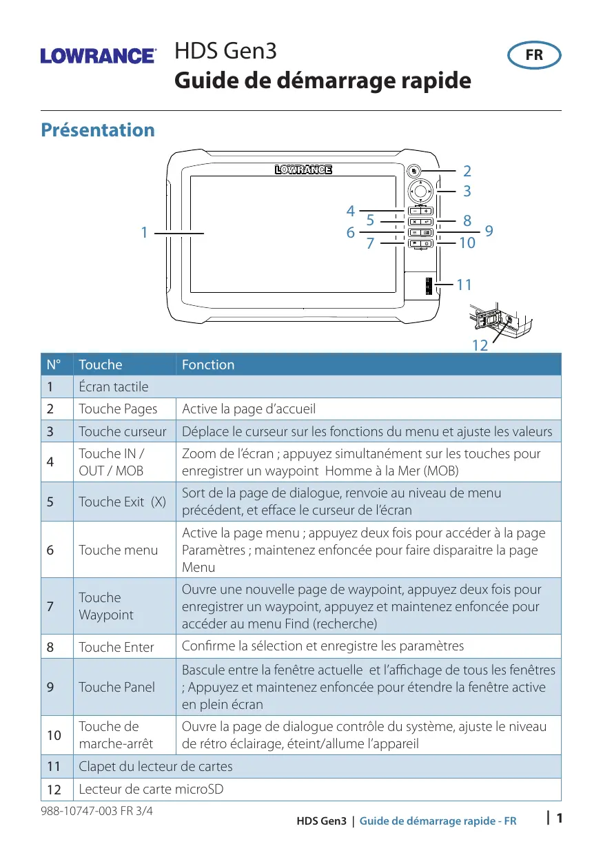 Lecteur de carte microSD 988-10747-003 FR 3/4 Fonction HDS Gen3 | Guide de démarrage rapide - FR | 1 Bouton marche-arrêt