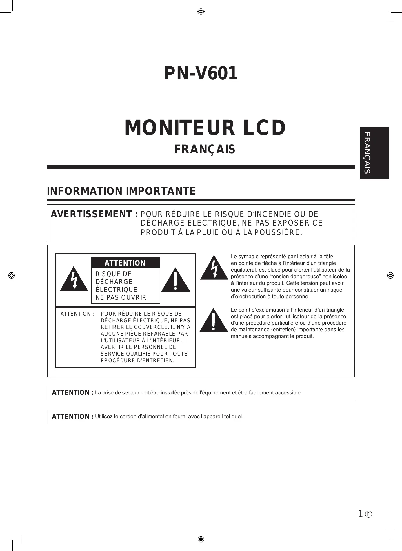 Retrouvez gratuitement la notice de l'appareil PN-V601 SHARP au format PDF.