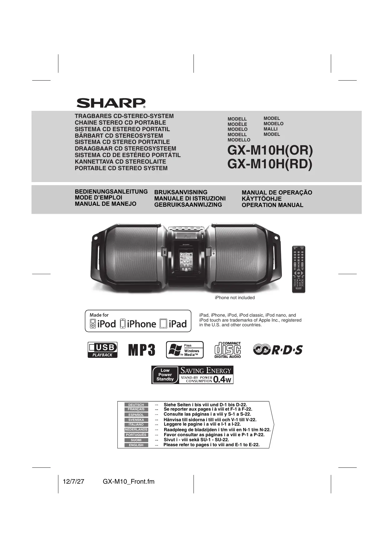 Retrouvez gratuitement la notice de l'appareil GX-M10H(OR)/(RD) SHARP au format PDF.