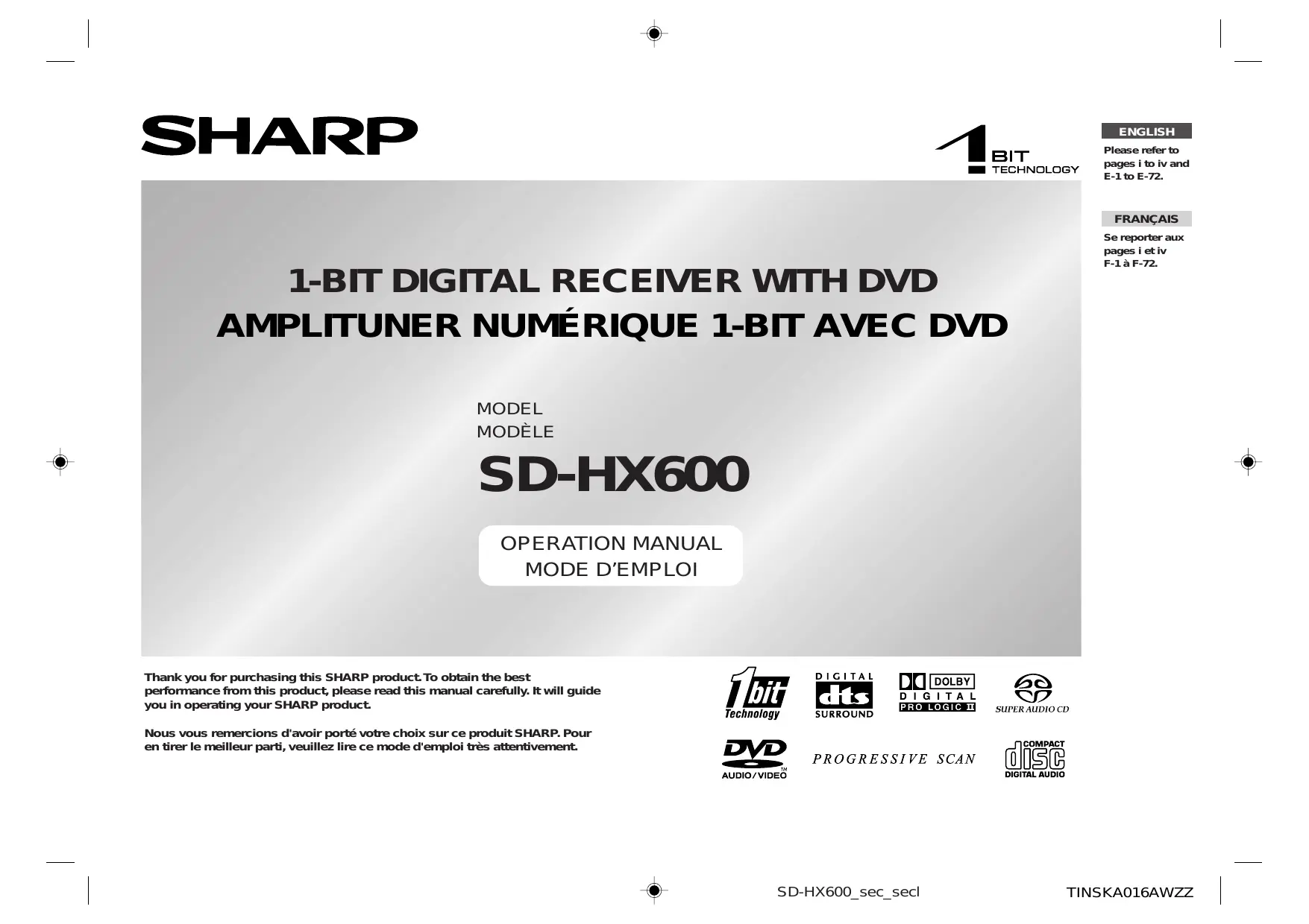SD-HX600 - Lecteur CD SHARP - Notice d'utilisation et mode d'emploi gratuit