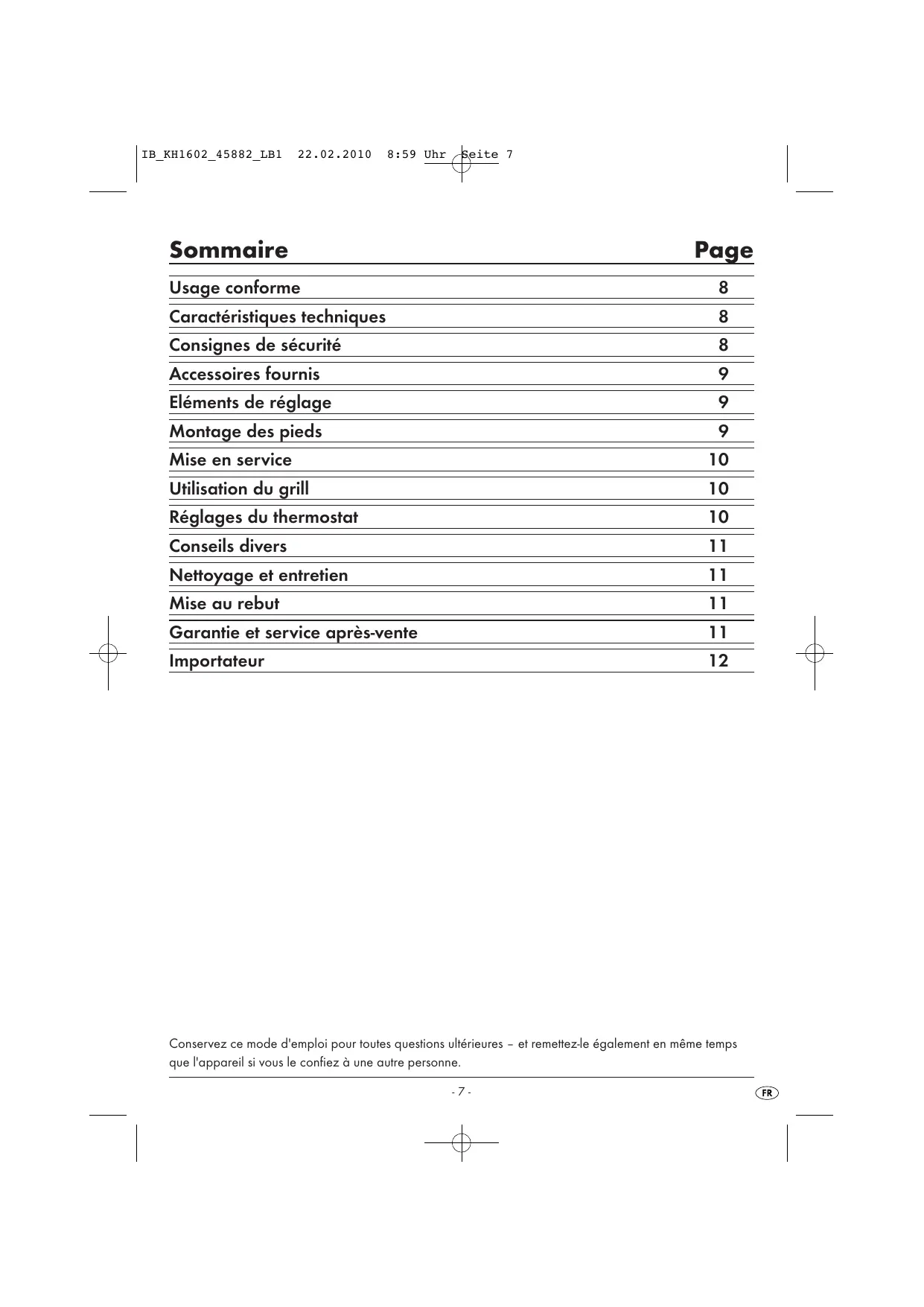 Conserve ce mode d'emploi pour toutes questions ultérieures - et remettez-le également en même temps que l'appareil si vous le confiez à une autre personne.