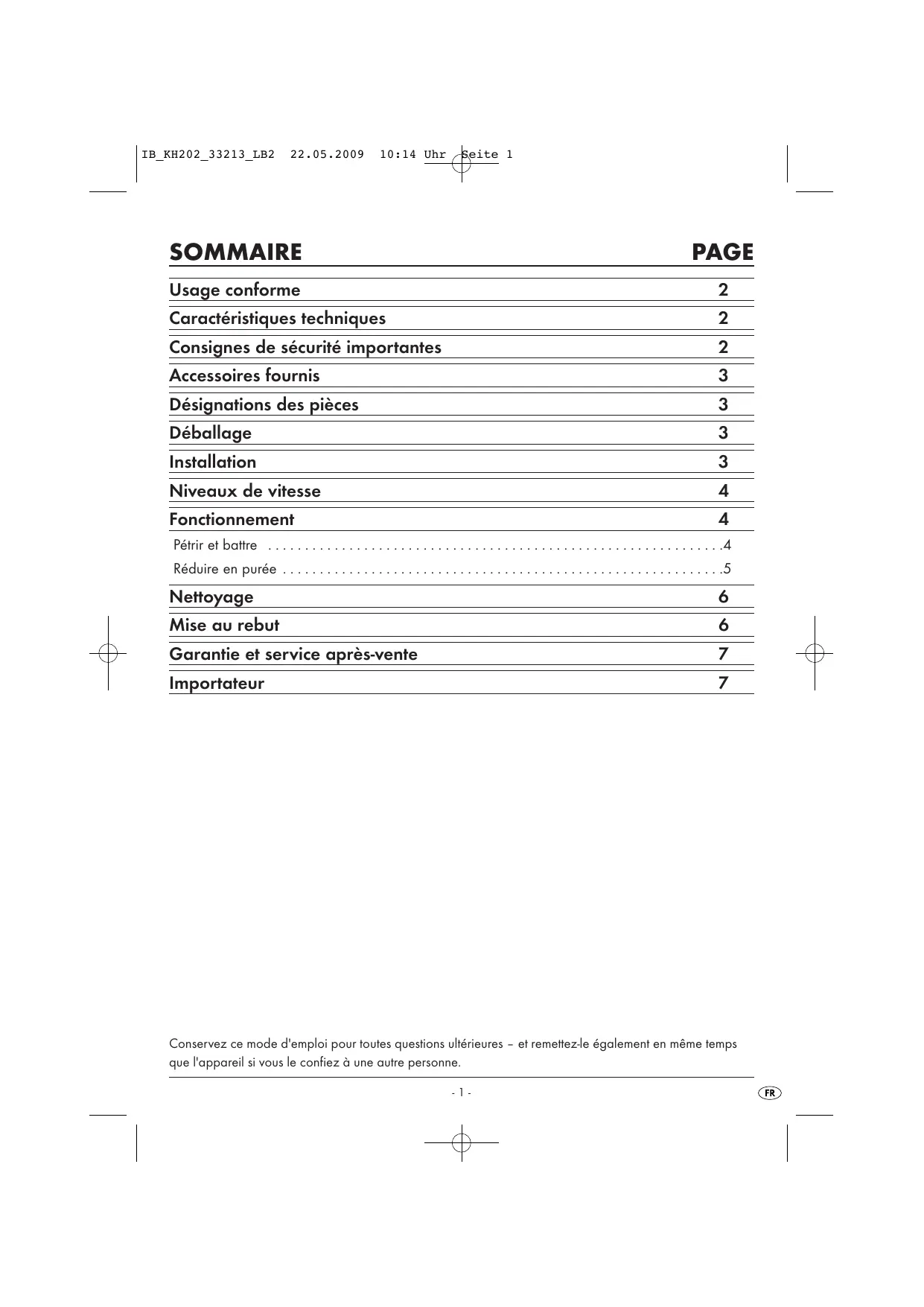 Conservez ce mode d'emploi pour toutes questions ultérieures – et remettez-le également en même temps que l'appareil si vous le confiez à une autre personne.