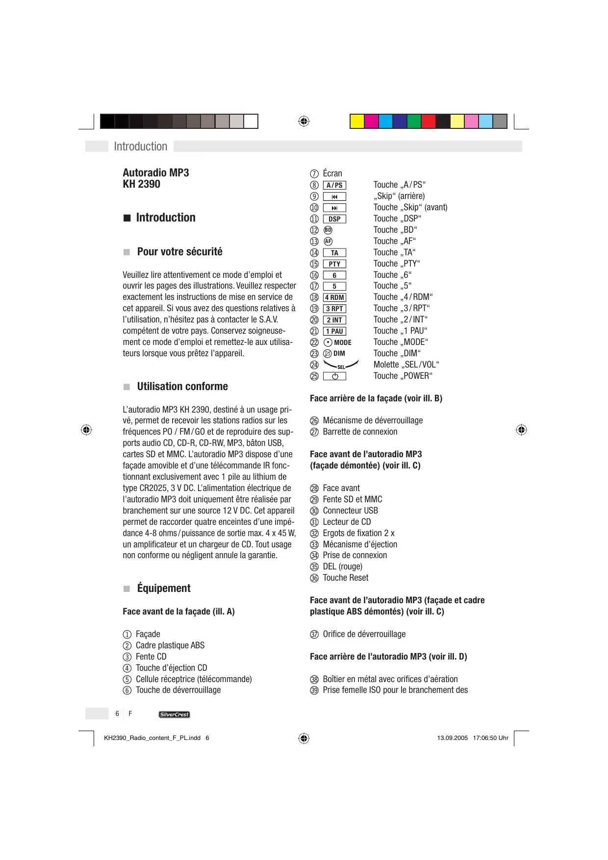 MODE D'EMPLOI KH 2390 SILVERCREST