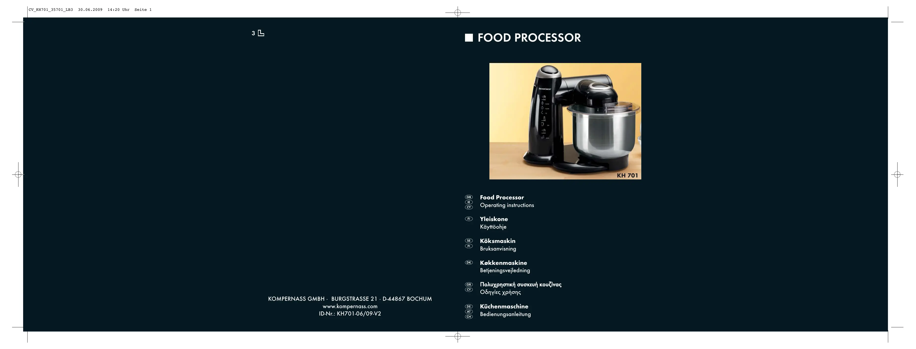 Retrouvez gratuitement la notice de l'appareil KH 701 FOOD PROCESSOR SILVERCREST au format PDF.