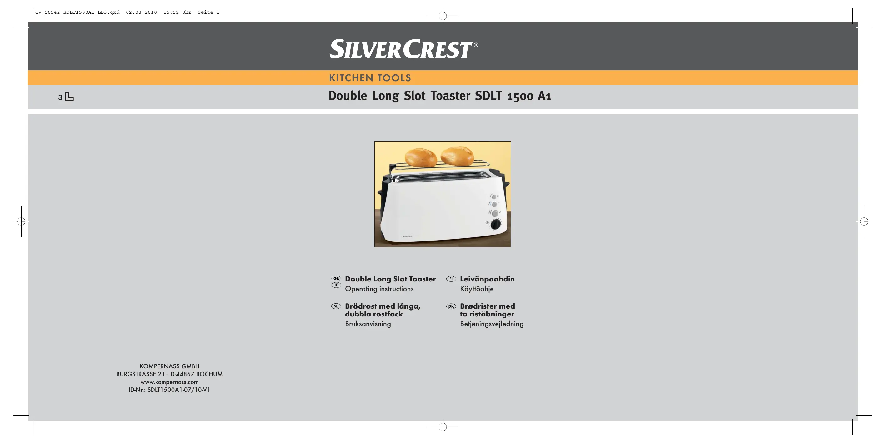 Retrouvez gratuitement la notice de l'appareil SDLT 1500 A1 DOUBLE LONG SLOT TOASTER SILVERCREST au format PDF.