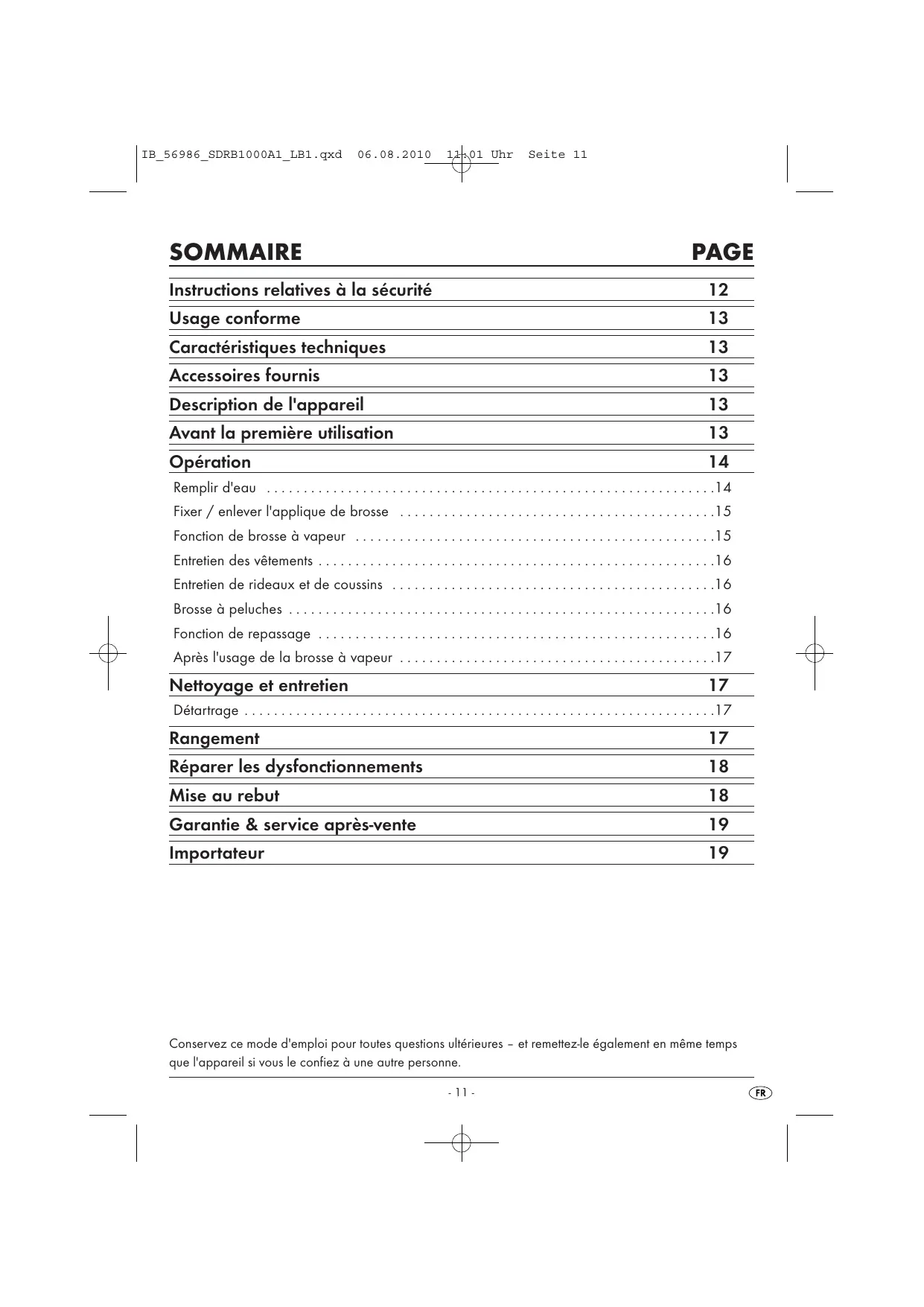Conserve ce mode d'emploi pour toutes questions ultérieures - et remettez-le également en même temps que l'appareil si vous le confiez à une autre personne.