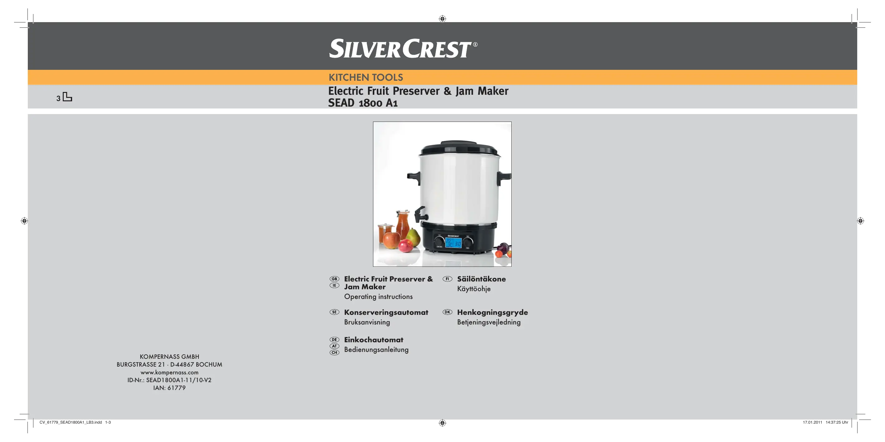 Retrouvez gratuitement la notice de l'appareil SEAD 1800 A1 SILVERCREST au format PDF.