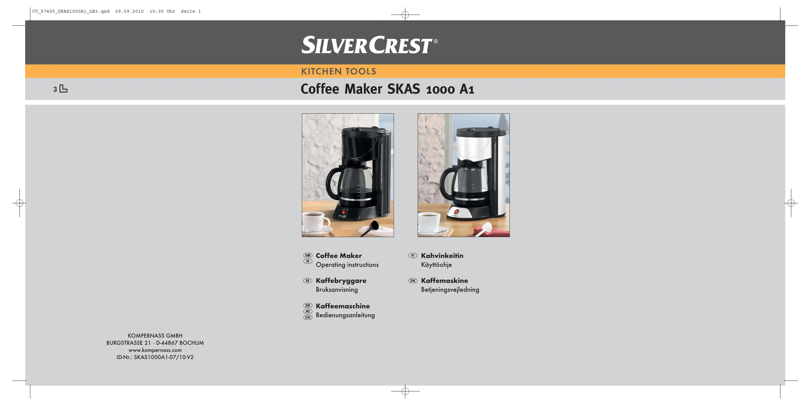 MODE D'EMPLOI SKAS 1000 A1 COFFEE MAKER SILVERCREST