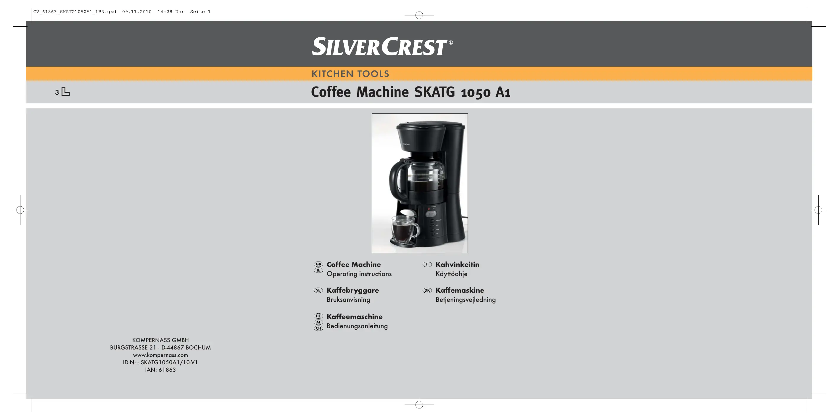 Retrouvez gratuitement la notice de l'appareil SKATG 1050 A1 COFFEE MACHINE SILVERCREST au format PDF.